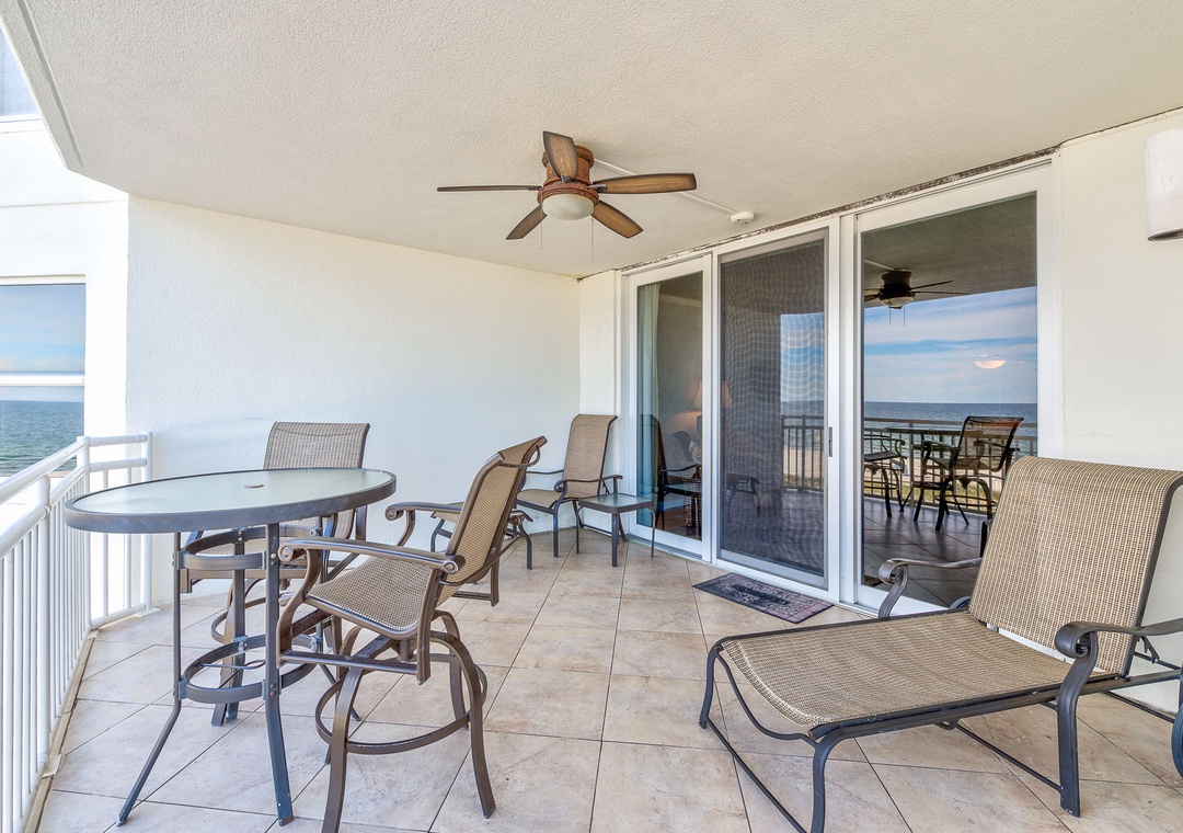 I read the previous reviews and that plus the pictures of the balcony is the reason we decided on this unit. We were so pleased we did. Very spacious, 2 bedroom unit. Everything was clean and on scheduled time for our arrival. Kitchen was very well supplied with anything you may need to prepare whatever you would at home. It is a third floor unit, which was the perfect view for us. The elevators were fast too. I'm impressed by that because we have stayed in condominiums where we had to wait 15 minutes for an elevator. We didn't know until the last day that there apparently is a storage closet across the hall that belongs to the unit that can be used to store floats, chairs, etc...I wish we had read that. The only negative, for my husband actually, he does enjoy a cigar. It would have been nice for us to sit on the balcony together. But, he just walked down to the beach at night. He was fine. Also, when I go to the beach, I like to listen to the waves when I sleep. I couldnt open the doors because of freezing the unit up. But, I 'm fine and I slept very well. The mattress is very comfortable. Thank you to the owners for sharing your lovely place with us. Jim and I already would love to stay again. We both said thats where we stay from now on. In addition, the coffee mugs , we looked them up. Impressive and proud.- Reviewed On: 8/29/2017
