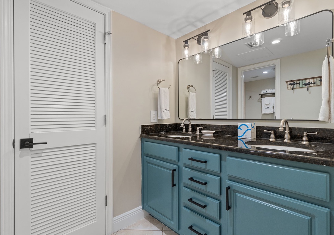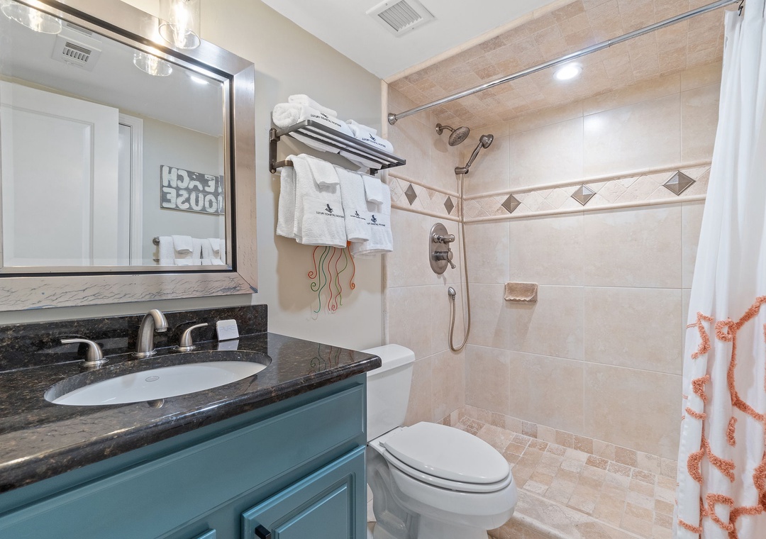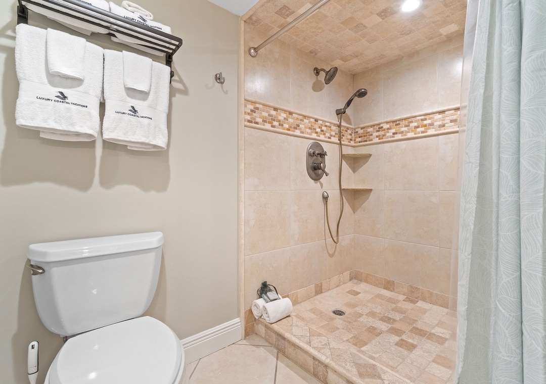 Both bedrooms in this luxurious condo are designed for ultimate comfort and relaxation. The master suite features a plush king bed, adorned with premium linens. The second bedroom is equally inviting, with a queen bed and easy access to the second full bathroom, which also includes a shower and modern fixtures.