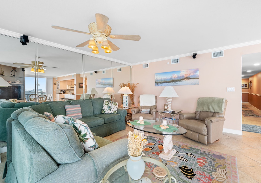 Each bedroom is a luxurious retreat, featuring plush linens and ample space to rest and rejuvenate after a day of exploring the wonders of Perdido Key. The three bathrooms offer privacy and comfort, ensuring that everyone has their own personal sanctuary.