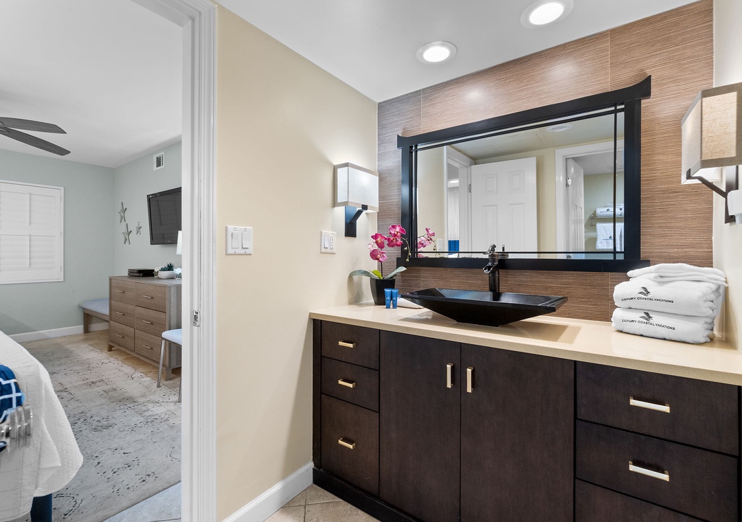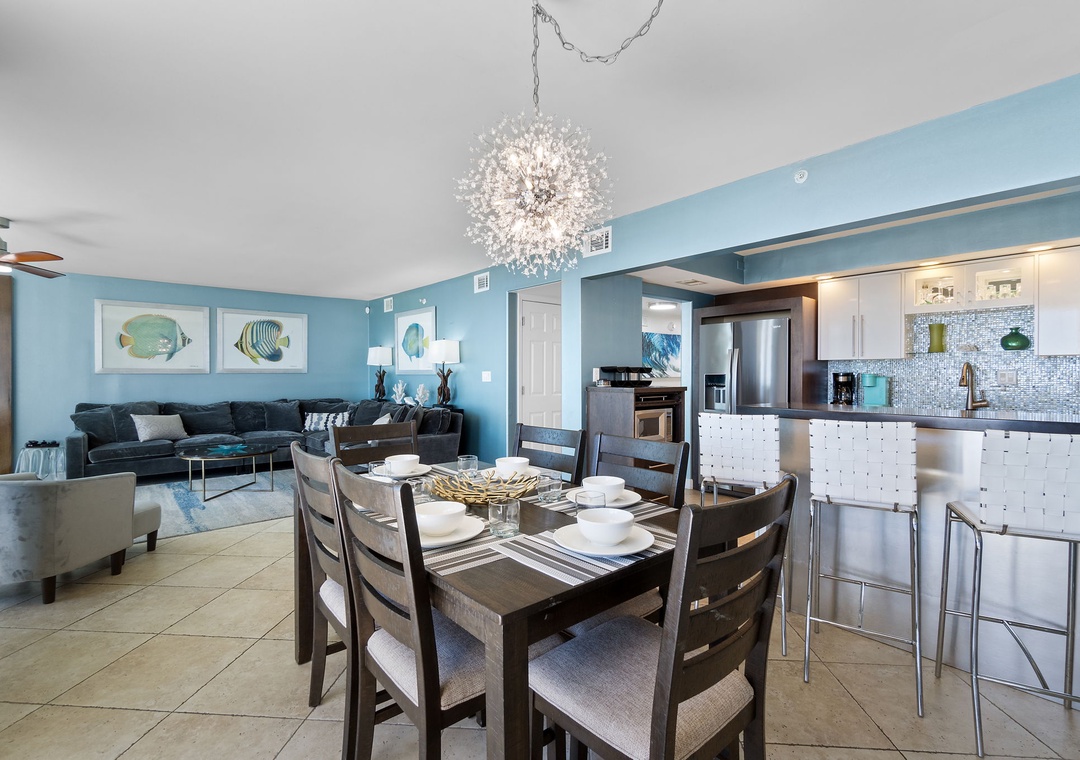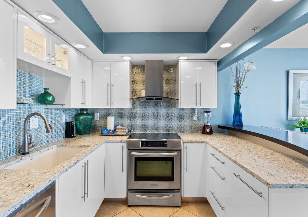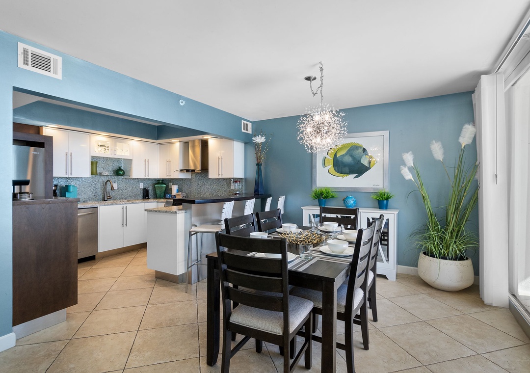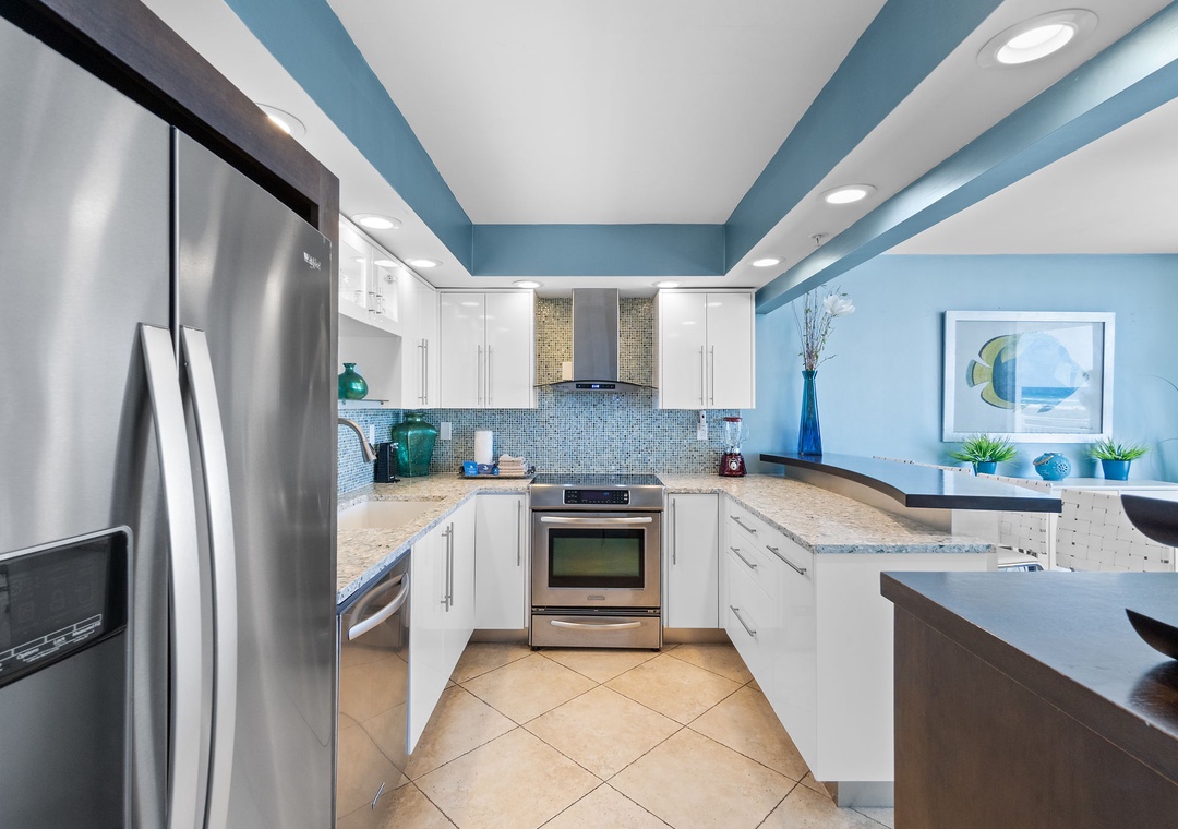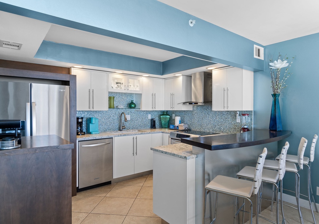 Inside, you'll find a thoughtfully curated space featuring modern coastal décor, high-end finishes, and a fully equipped gourmet kitchen. Whether you're preparing a quick beach snack or a seafood feast, you'll feel right at home.