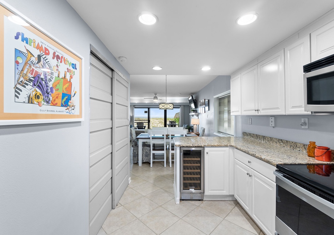 Enjoy a luxurious Gulf Coast getaway in this stunning 2-bedroom, 2-bath condo at Shipwatch Surf and Yacht Club in Perdido Key, Florida. Located on the 1st floor, this spacious beachfront unit offers breathtaking views of the emerald waters and white quartz sands of the Gulf of Mexico. With lush tropical landscaping and a sparkling beachfront pool, you’re just steps away from the pristine shoreline. The open-concept living area features designer furnishings and a coastal-chic aesthetic, creating a stylish and relaxing atmosphere. Large sliding glass doors lead to a private balcony, where you can savor your morning coffee while watching the sunrise or unwind with a glass of wine at sunset.