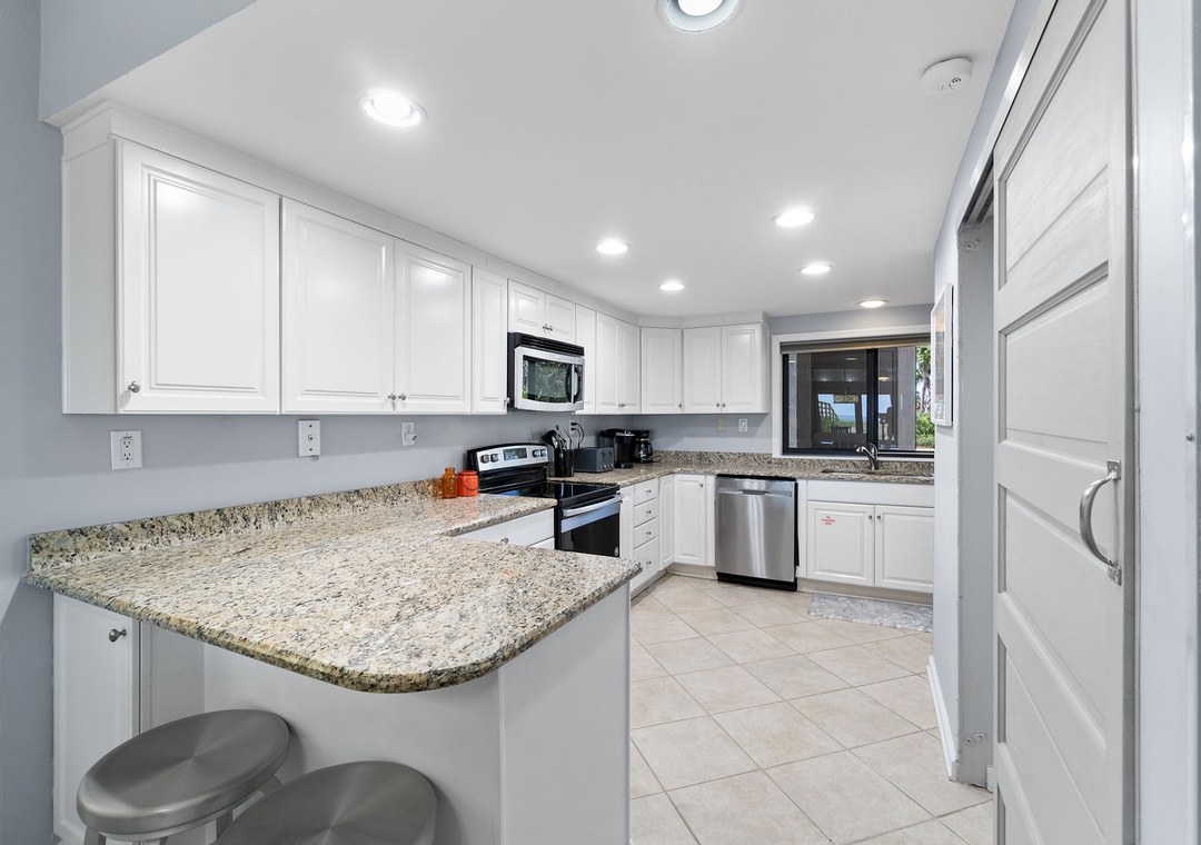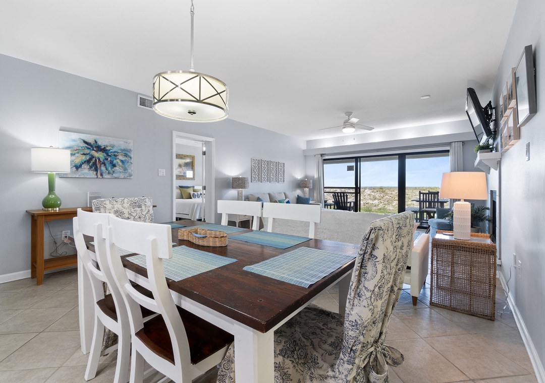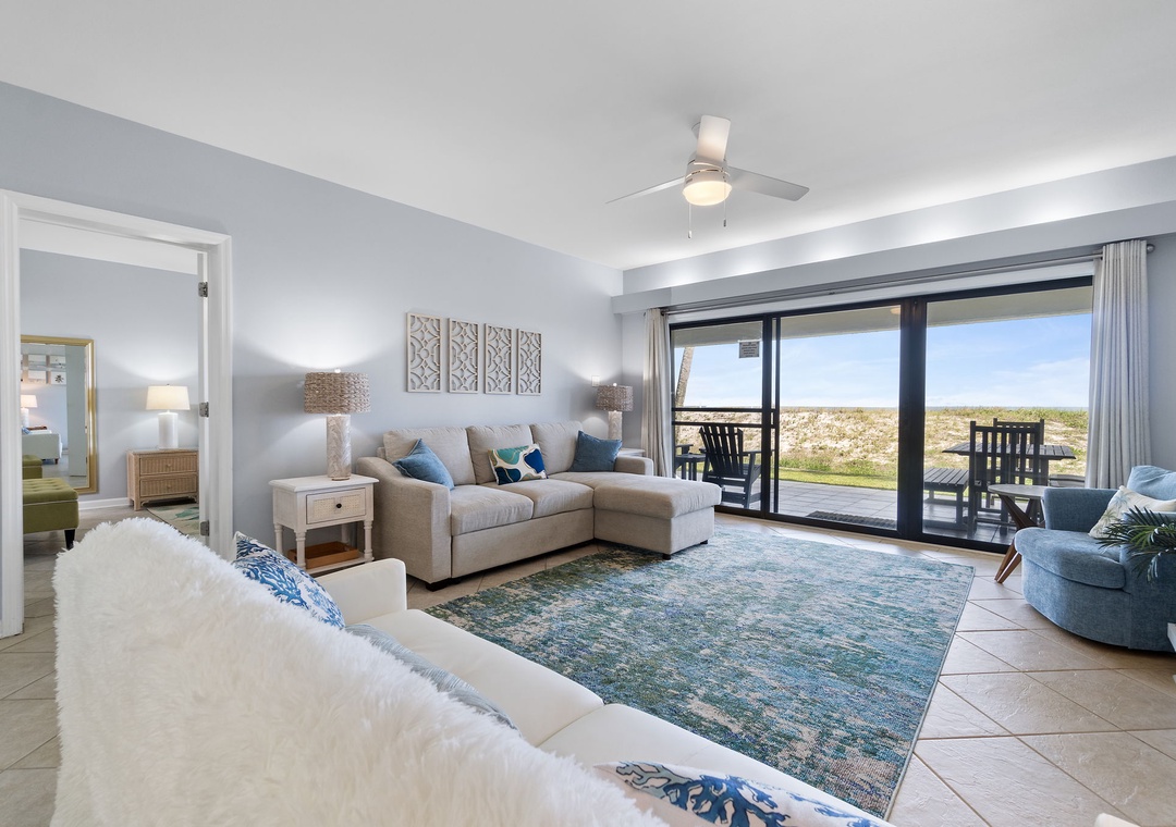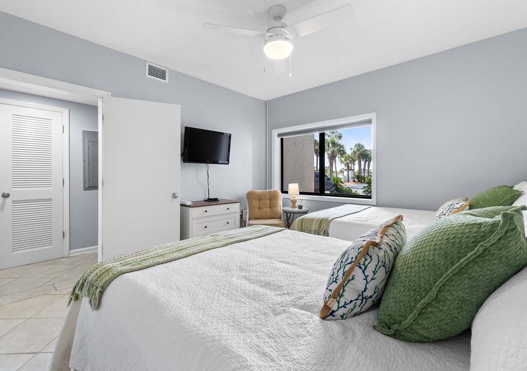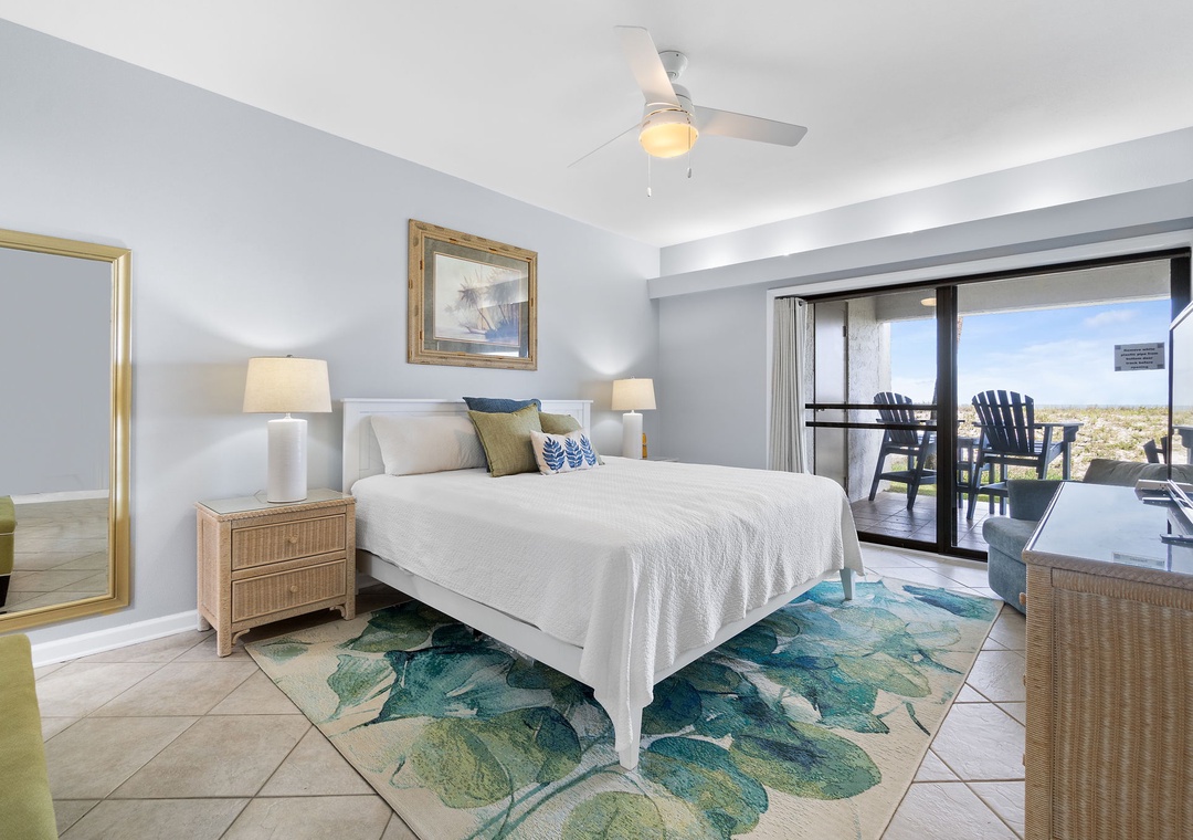 Both bedrooms are designed for ultimate comfort and relaxation. The master suite includes a king bed, plush bedding, a flat-screen TV, and direct access to the beachfront balcony, letting you wake up to the sound of waves each morning. The guest bedroom offers 2 full beds, with a premium mattress and high-thread-count linens. With an additional queen sleeper sofa in the living room, this condo comfortably sleeps up to six guests. Whether you're lounging by the pool, enjoying the stunning Gulf views, or relaxing in the beautifully appointed living spaces, this Shipwatch condo promises an unforgettable beach vacation.