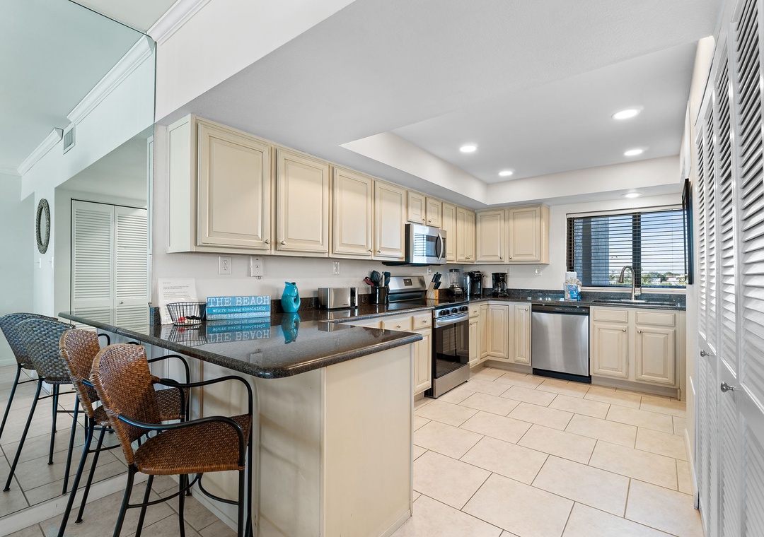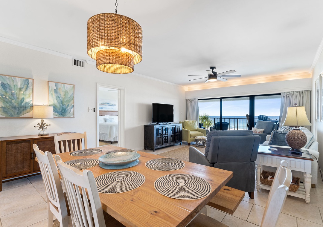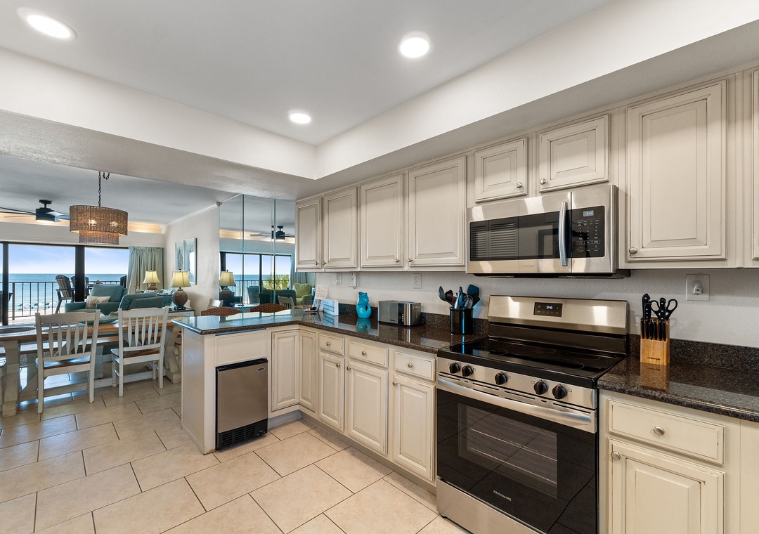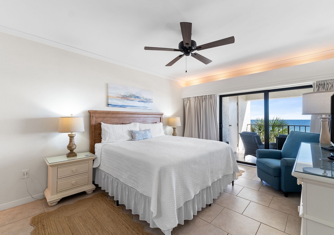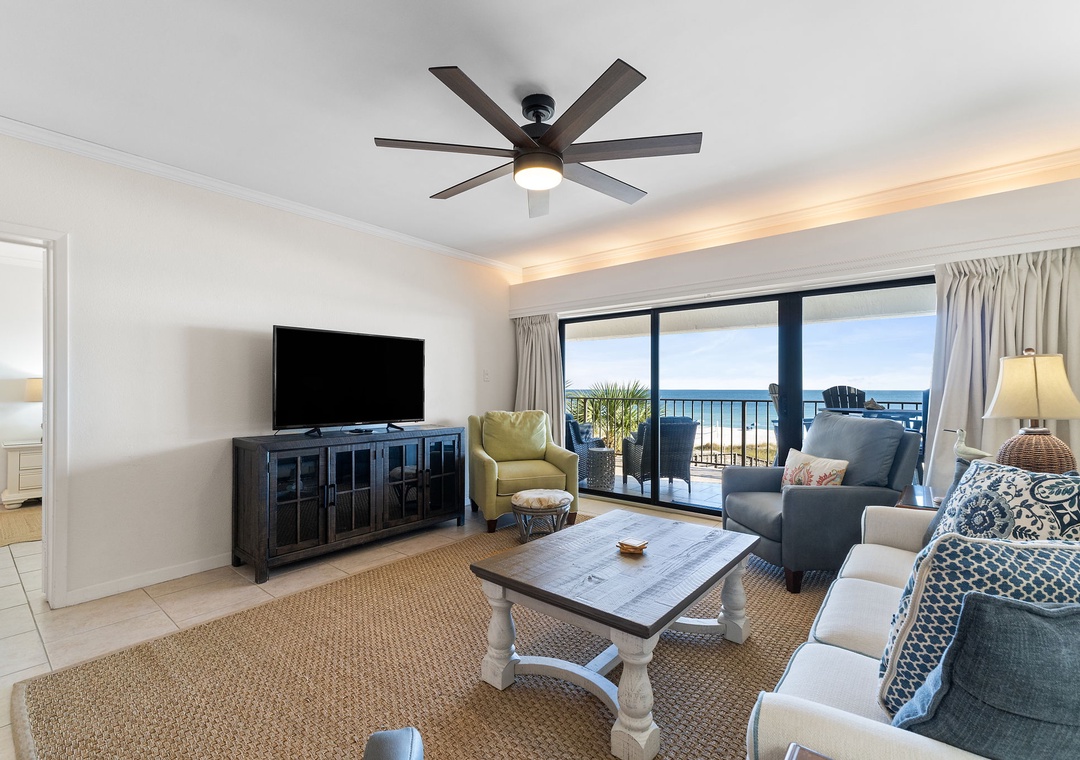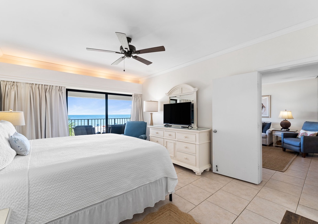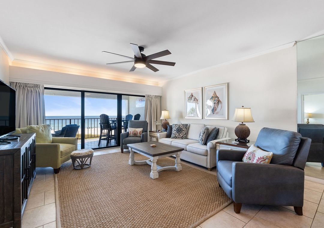 Both bedrooms are designed for ultimate comfort and relaxation. The master suite includes a king bed, plush bedding, a flat-screen TV, and direct access to the beachfront balcony, letting you wake up to the sound of waves each morning. The guest bedroom offers a queen bed, with a premium mattress and high-thread-count linens. With an additional queen sleeper sofa in the living room, this condo comfortably sleeps up to six guests. Whether you're lounging by the pool, enjoying the stunning Gulf views, or relaxing in the beautifully appointed living spaces, this Shipwatch condo promises an unforgettable beach vacation.