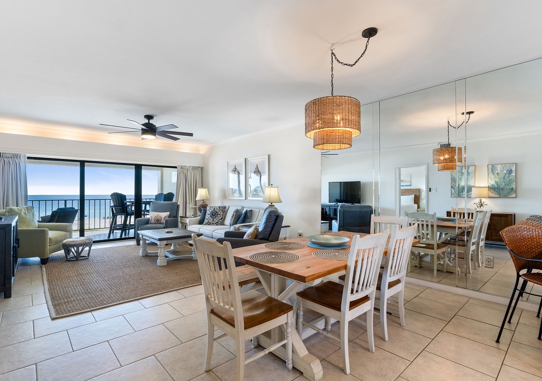 Enjoy a luxurious Gulf Coast getaway in this stunning 2-bedroom, 2-bath condo at Shipwatch Surf and Yacht Club in Perdido Key, Florida. Located on the 3rd floor, this spacious beachfront unit offers breathtaking views of the emerald waters and white quartz sands of the Gulf of Mexico. With lush tropical landscaping and a sparkling beachfront pool, you’re just steps away from the pristine shoreline. The open-concept living area features designer furnishings and a coastal-chic aesthetic, creating a stylish and relaxing atmosphere. Large sliding glass doors lead to a private balcony, where you can savor your morning coffee while watching the sunrise or unwind with a glass of wine at sunset.