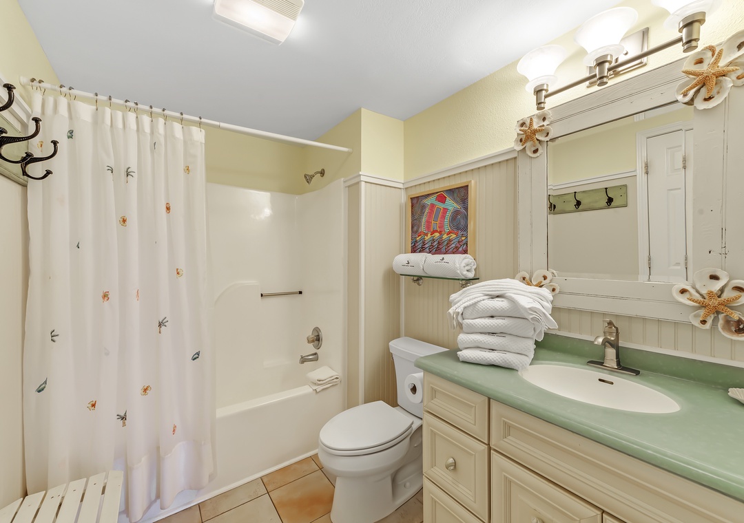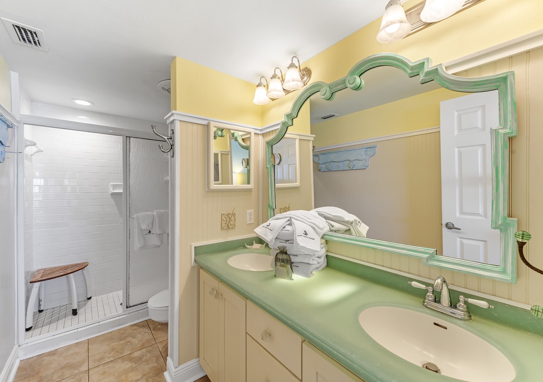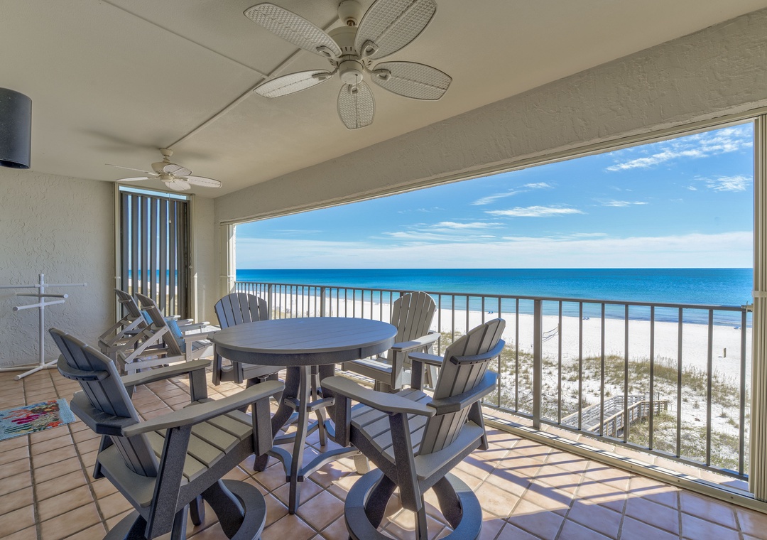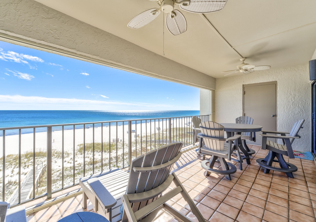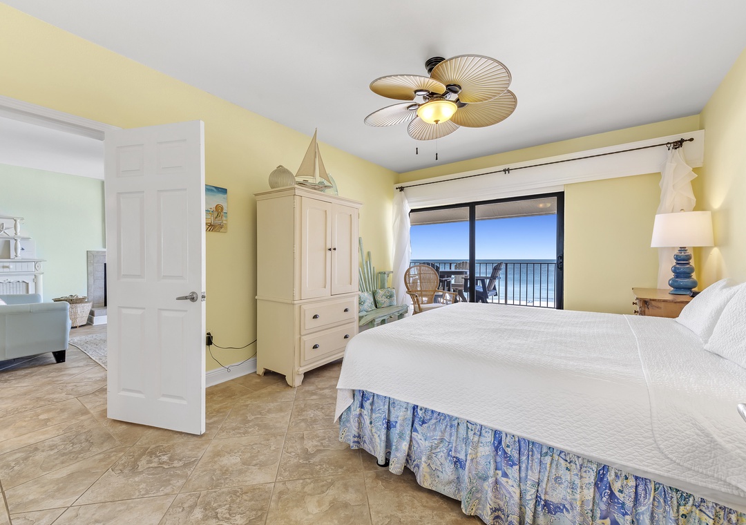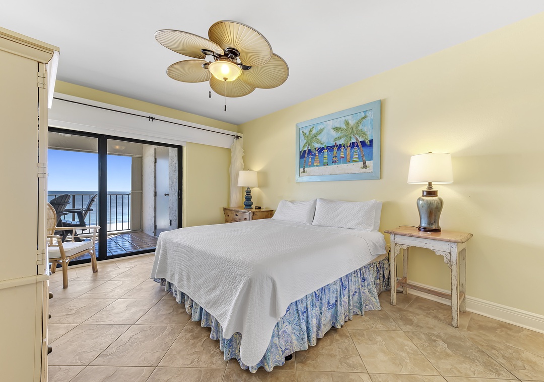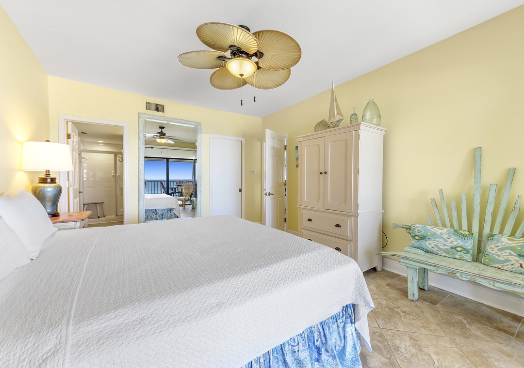 The covered terrace provides plenty of seating, allowing you to enjoy meals alfresco while gazing at the moonlit water and listening to the soothing sounds of the waves. After a day of fun, retreat to one of three luxurious bedrooms, each equipped with premium mattress sets, plush bedding, and high-thread-count linens. The master bedroom offers direct access to the balcony, so you can wake up to views of turquoise waters and white sands just steps from your king bed. The master bath features a walk-in glass shower, double vanity sinks, and oversized cotton towels, perfect for relaxing after a long day at the beach. Book your dream vacation at Shipwatch A501 today!