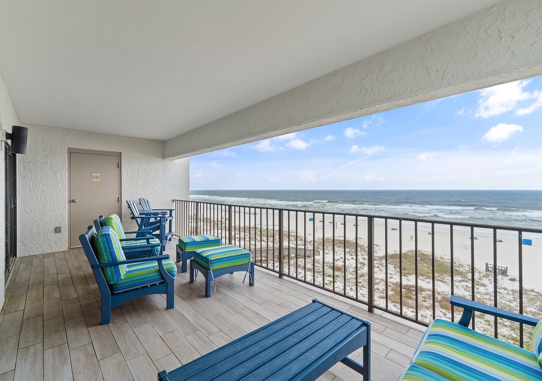 Thank you, Courtney, for your 5-star review. So glad your first stay was a great one and that the balcony furniture sealed the deal. Happy it was peaceful and perfect for your family — we look forward to welcoming you back. ~Sunny regards, Luxury Coastal VacationsLuxury Coastal Vacations staff
