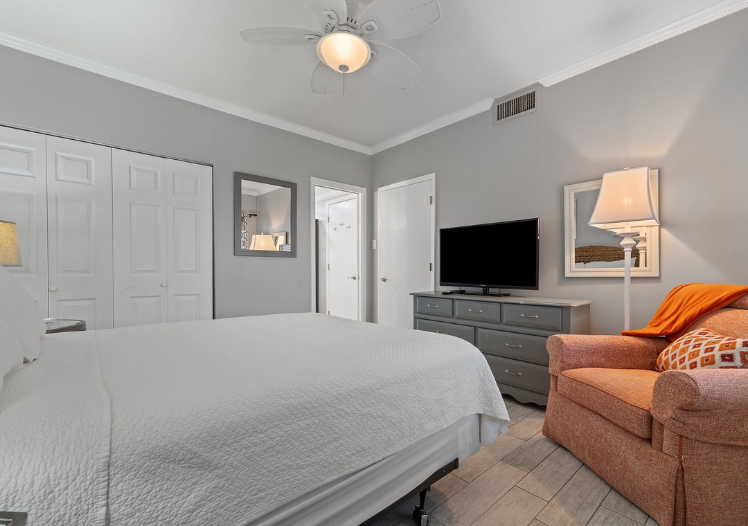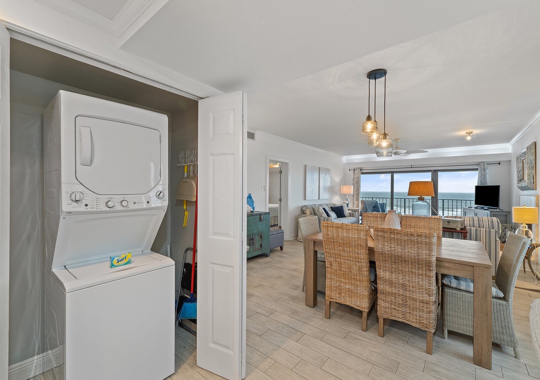 The master suite includes a king size bed with high quality mattress, luxury linens, LCD TV and adjoining bath with shower/tub combination. The second bedroom features a queen bed with a flat screen television and adjoining bath. Additional unit features include a full size washer and dryer, plush 100% oversize bath towel sets.