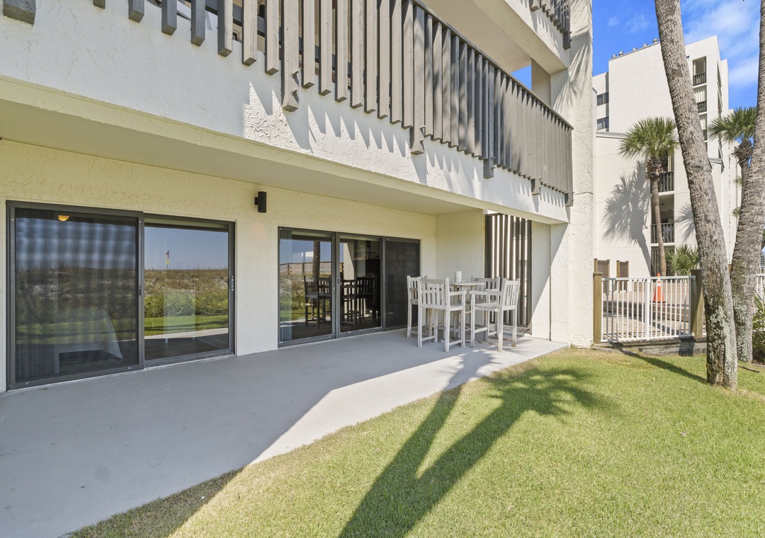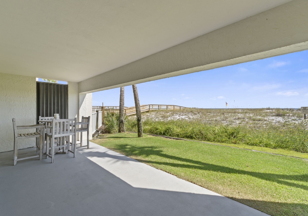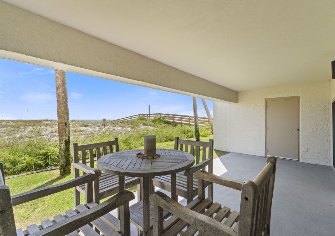 From your ground-floor patio, soak in stunning views of the shimmering Gulf waters and soft white sands from every angle. The spacious patio features a dining table for four and ultra-comfortable bar-height chairs, perfect for sipping morning coffee at sunrise, enjoying an evening glass of wine at sunset, or indulging in a moonlit dinner while the gentle surf provides a soothing soundtrack.