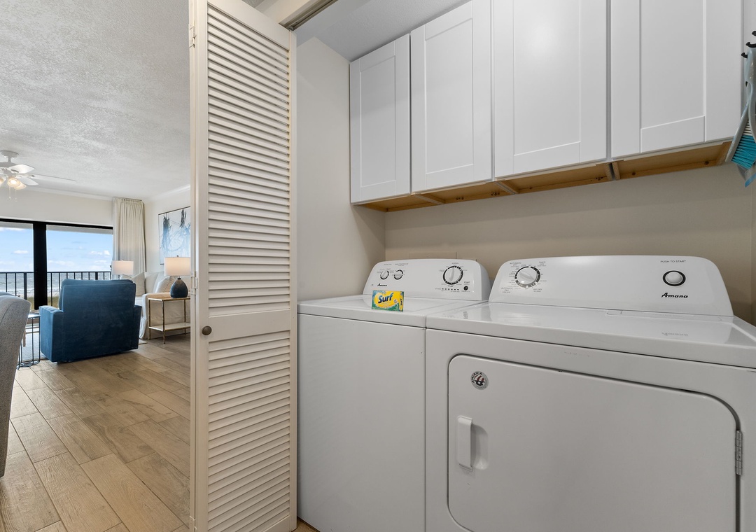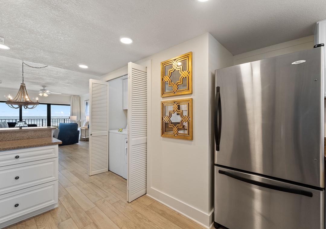 We really enjoyed this condo, we had 5 people 2 adults and 3 kids. Perfect amount of room and a great view of the beach. In the description of the condo it doesn’t state that there is a washer and dryer, but there is one and it was nice to bring home clean clothes. The kitchen had everything you would need even a crockpot. We would stay here again. Also if you know the area we could walk the beach to the FloraBama about 10 minutes.- Posted: 3/29/2019