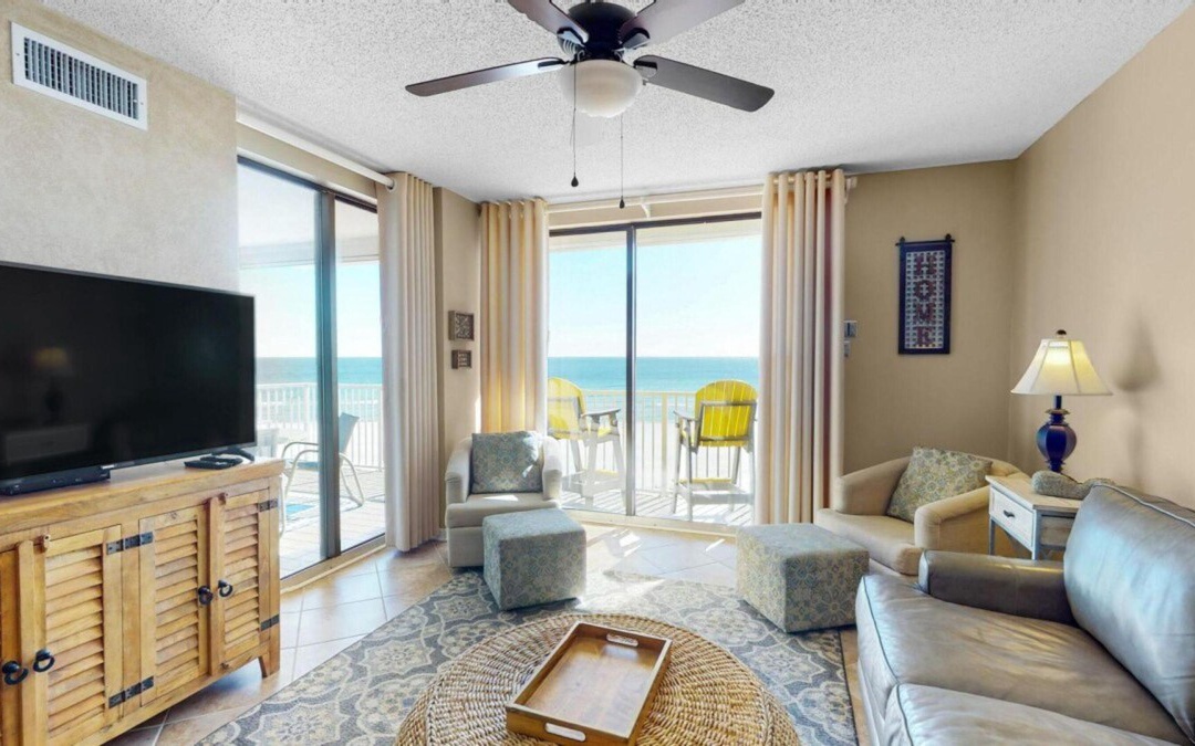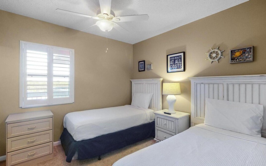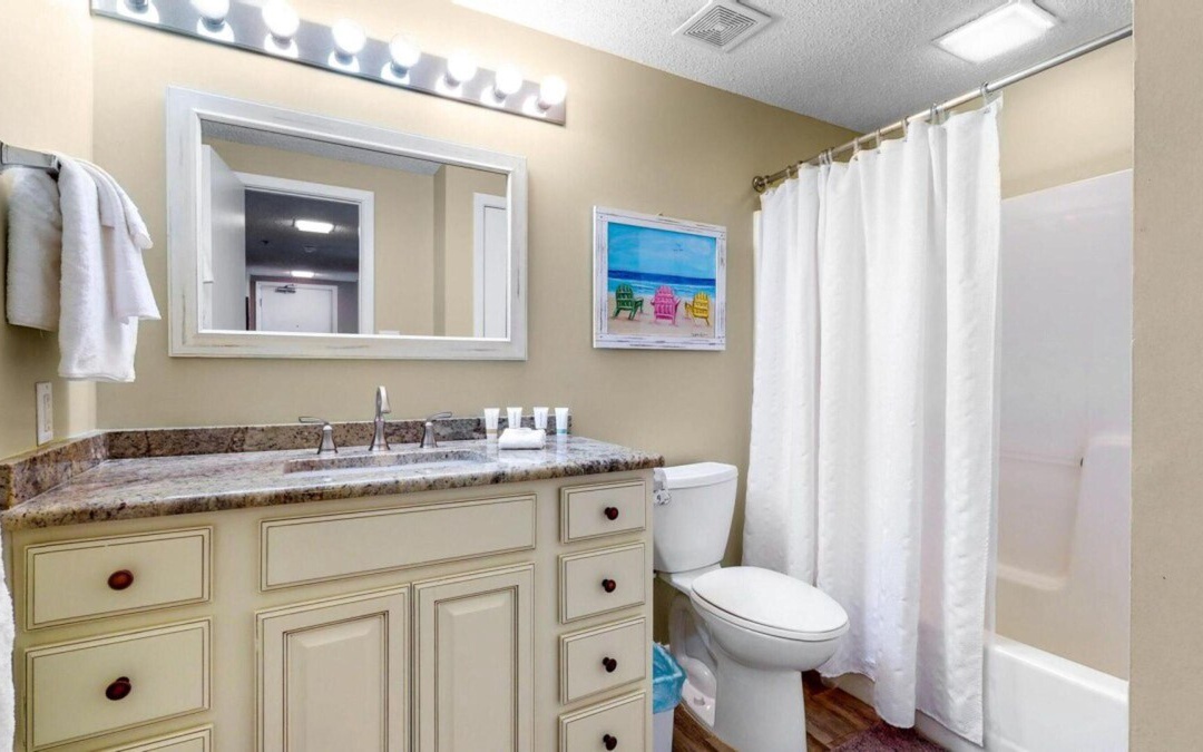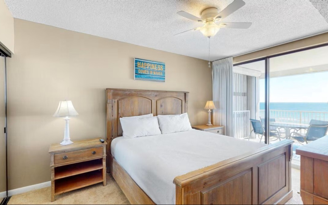 Shoalwater 405 is a beautifully decorated 3-bedroom, 2-bathroom condo in the heart of Orange Beach, AL. The primary suite features a luxurious king bed, private balcony access, and an en-suite bathroom, offering the perfect retreat. The second bedroom includes a cozy queen bed, while the third is equipped with two twin beds, ideal for families or friends traveling together. A shared second bathroom ensures convenience for all. The open and airy living room boasts a sleeper sofa, comfortably accommodating up to 8 guests. With in-unit laundry facilities, this condo ensures all the comforts of home.