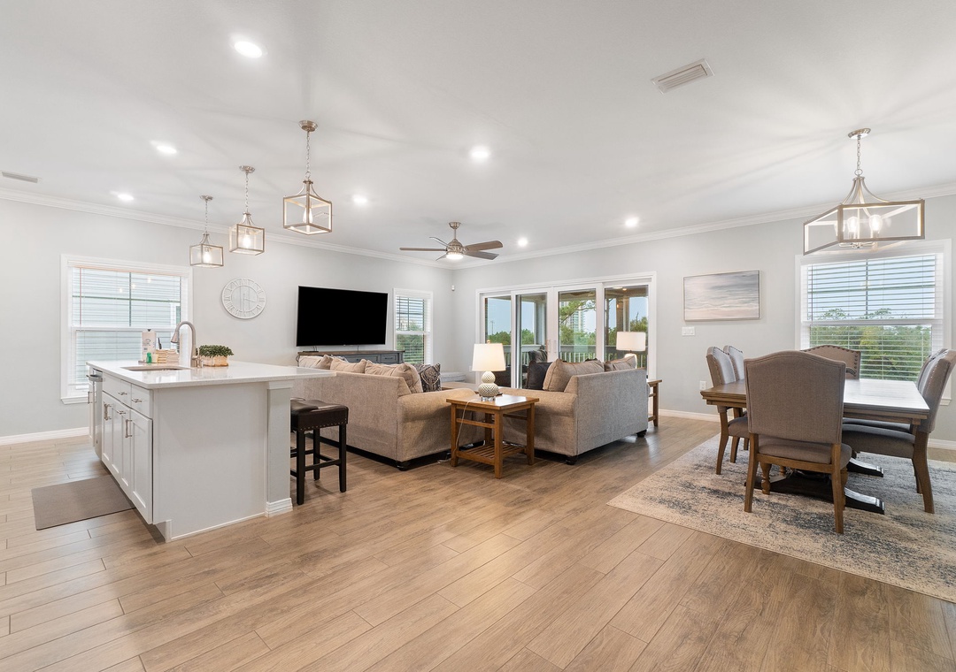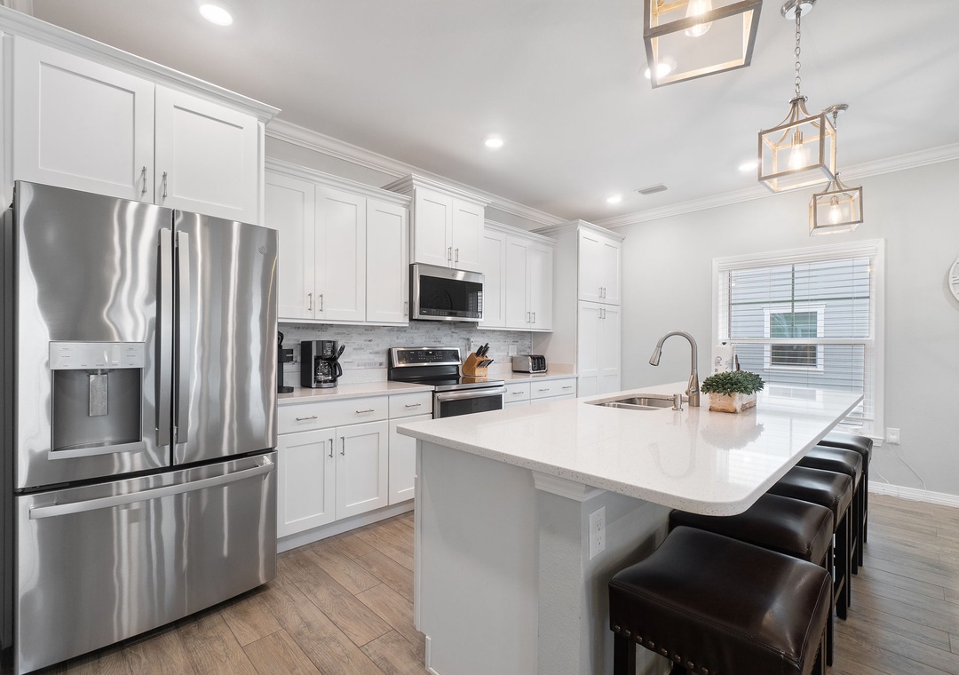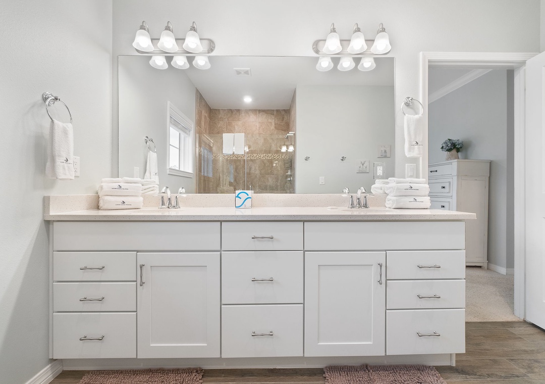 Retire after a long day of recreation to one of 4 luxuriously appointed bedrooms and catch some quality z's! With each offering premium mattress sets, high thread-count linens, posh bedding and flat screen TVs, you're sure to enjoy quality rest and relaxation during your much-deserved beach getaway! The master offers a king bed, the second includes a queen bed, the third offers a King and the forth bedroom (perfect for kids) offers a twin over full bunk bed, comfortably sleeping 9 guests!
