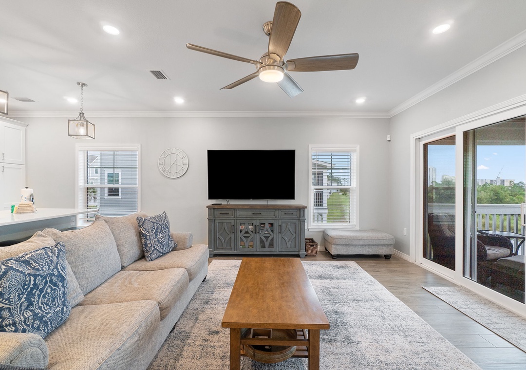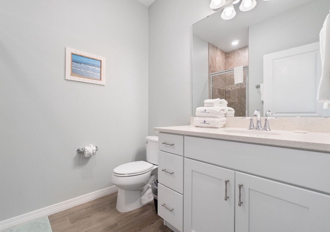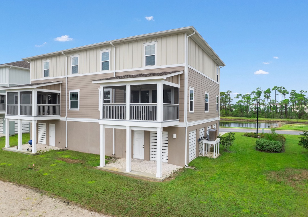 This was a wonderful unit, very clean (#1 importance to me) and bedding had comforters you knew had been washed since the last stay. The back deck was screened in with a very nice view from both front and back of house. Kids loved the massive television. The garage had lots of beach gear (wagon, chairs, umbrella, two bikes etc) and the community pool about two streets away was incredible. We enjoyed the shuttle which was always about 5 minutes or less of a wait.