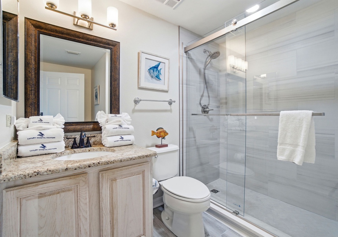 Retire to one of three luxuriously appointed bedrooms and catch some quality z’s during your much-deserved getaway! With each featuring premium mattress sets, posh bedding and high thread count linens, you’re sure to indulge in some quality rest and relaxation! The master offers beachfront balcony access, so you can wake up and look out over the magnificent turquoise waters and soft white quartz sands with only a few steps from your comfy king bed! The master bath is equally impressive, including a large jetted tub and separate walk-in shower, plenty of counter and cabinet space and plush 100% cotton oversized bath towel sets, perfect for pampering after a long day on the beach!