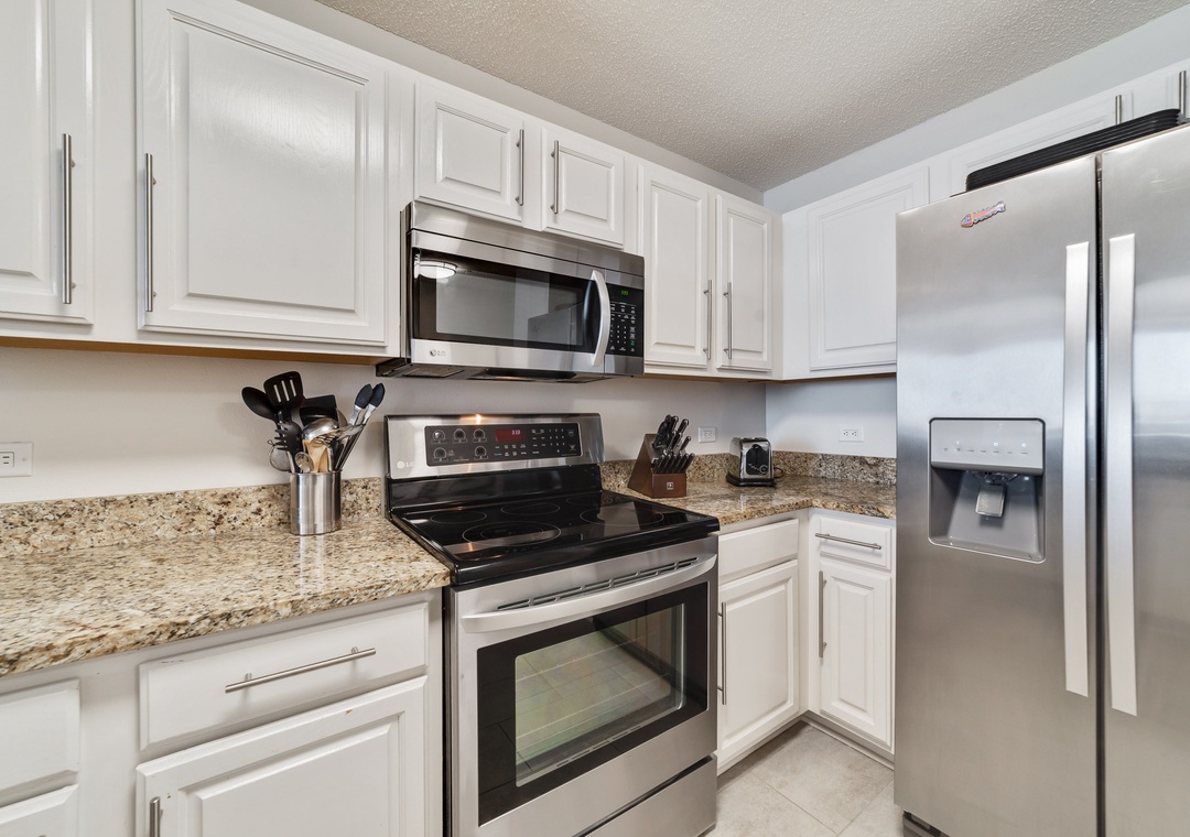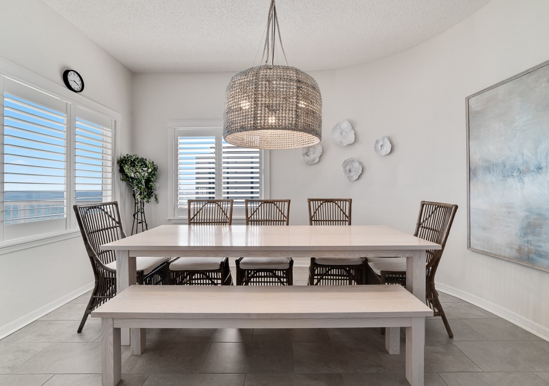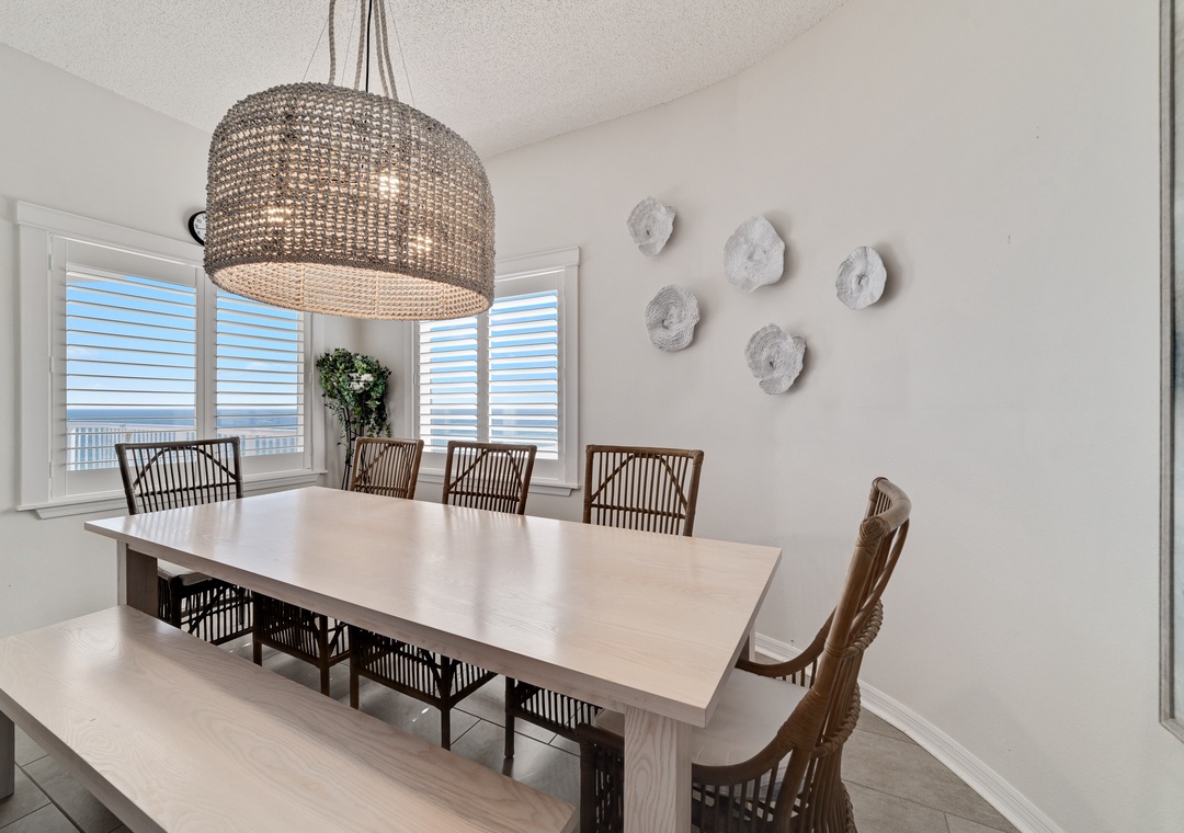 The gourmet kitchen offers everything needed to inspire your inner-chef, featuring top of the line stainless appliances, custom cabinetry and granite countertops, plus all the small appliances, utensils and cookware needed to prepare a culinary masterpiece! The dining area offers seating for 6, with additional seating for 3 at the breakfast bar.