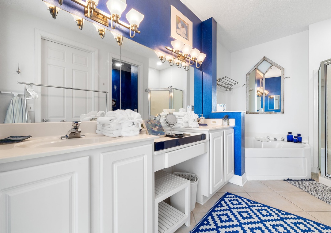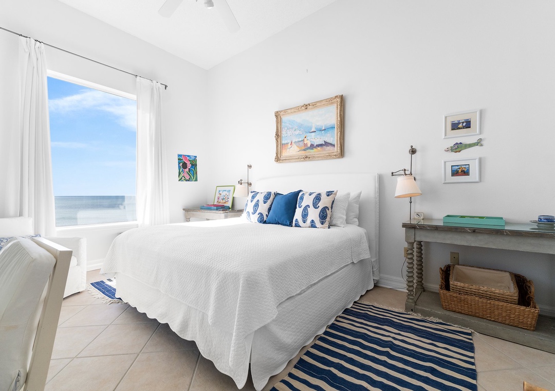 The gourmet kitchen offers everything needed to inspire your inner chef, including updated appliances, custom cabinetry and all the small appliances, utensils and cookware needed to prepare a culinary masterpiece! Retire to one of three luxuriously appointed bedrooms and catch some zzz’s during your much deserved getaway! The master offers beachfront balcony access, so you can wake up and look out over the magnificent turquoise waters and soft white quartz sands with only a few steps from your comfy king bed! The master bath is equally impressive, affording a large, jetted tub and separate walk-in shower, a double vanity and fluffy oversize 100% cotton bath towel sets, perfect for pampering after a long day on the beach.