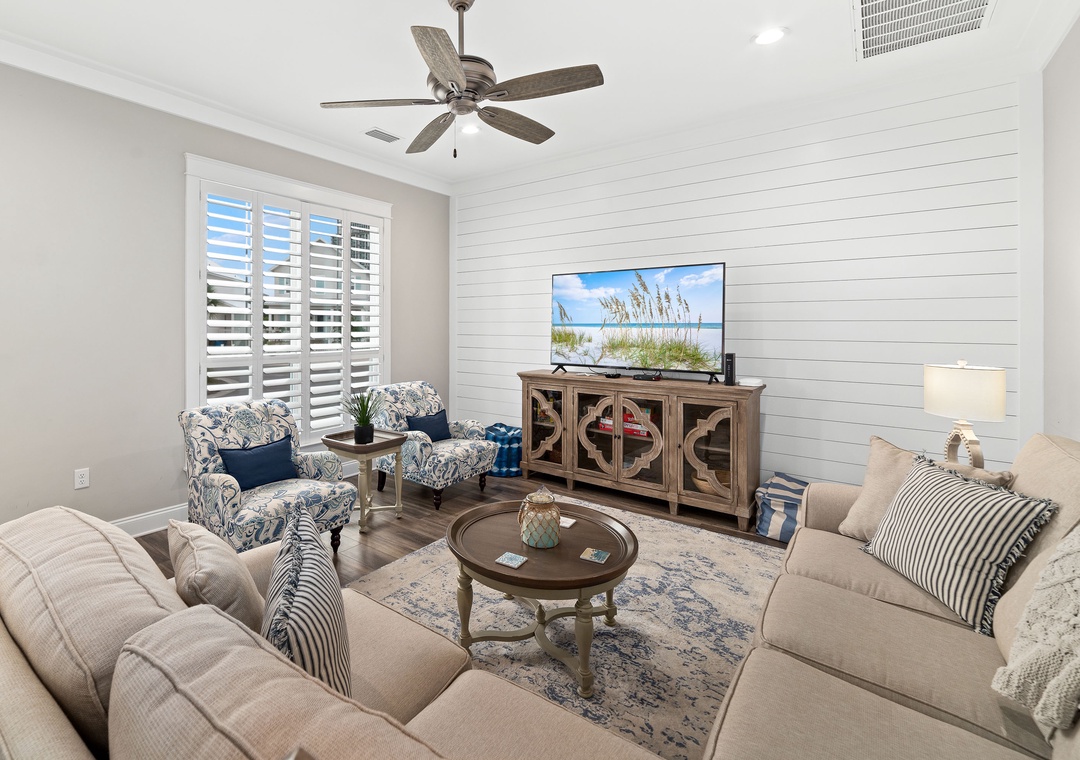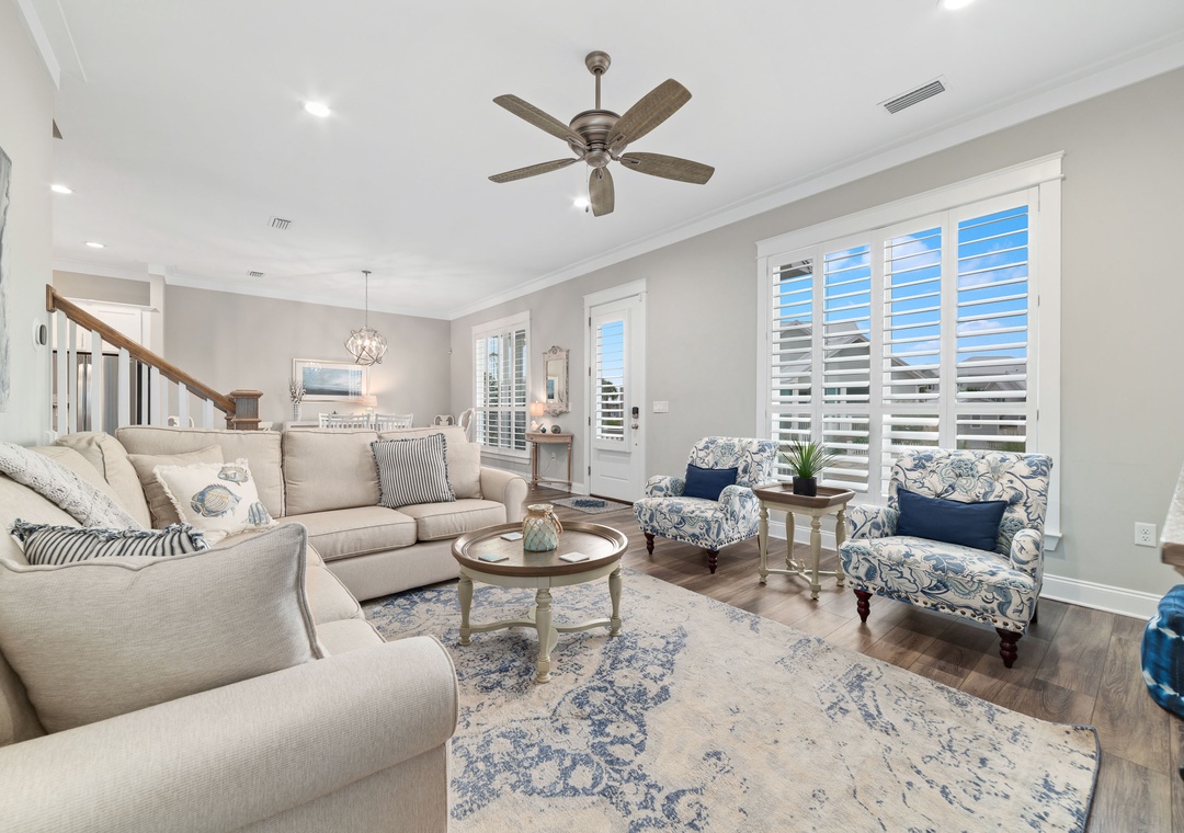 Starfish Cottage is a professionally designed home boasting gorgeous furnishings and modern electronics including smart TV's, and highspeed wifi making it an ideal space for discerning travelers seeking comfort and convenience while on vacation. Guests will also enjoy plentiful living space on the main level and second floor, as well as a back patio, spacious yard, and an array of additional features in addition to the unique floorplan, this home-away-from-home is certainly a step above the average vacation rental!