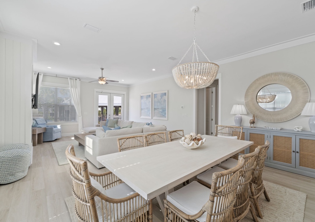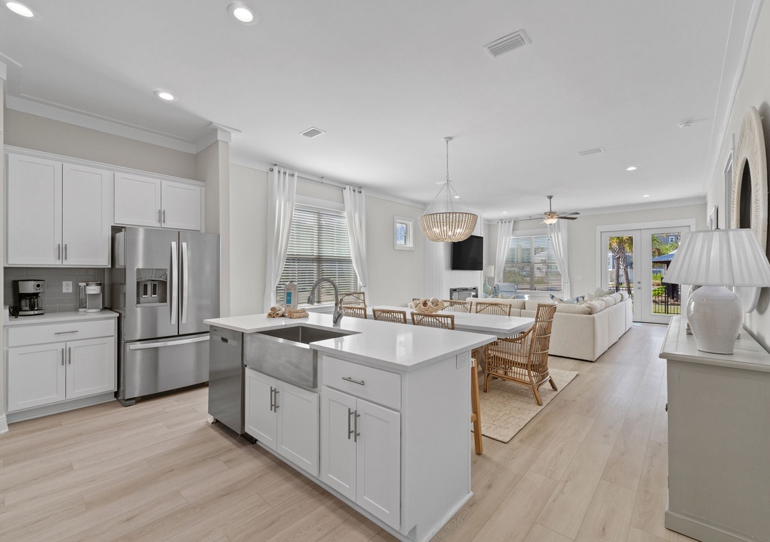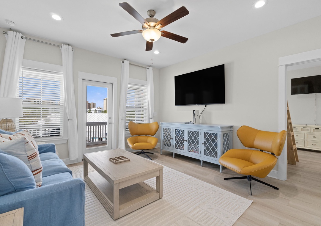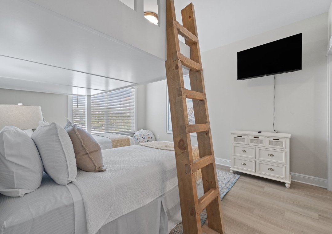Step into your private backyard oasis—ideal for relaxing evenings or lively cookouts around the BBQ grill. The open-concept living and dining area boasts coastal charm, while the bunk room loft creates a fun and cozy retreat for kids.