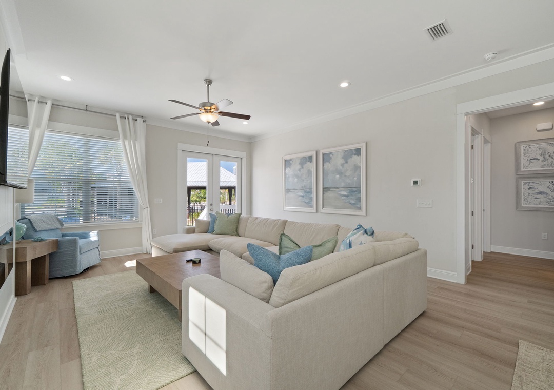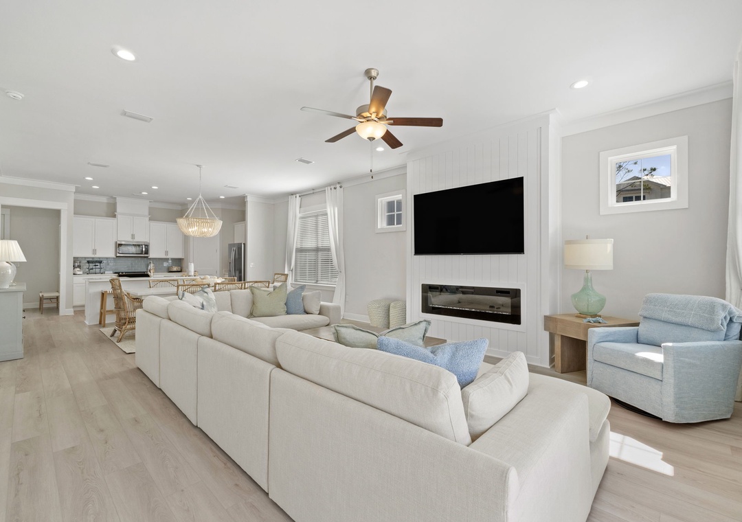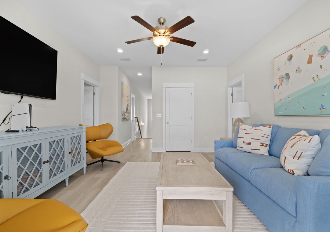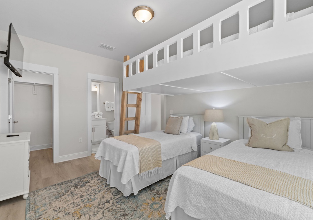 Step into your private backyard oasis—ideal for relaxing evenings or lively cookouts around the BBQ grill. The open-concept living and dining area boasts coastal charm, while the bunk room loft creates a fun and cozy retreat for kids.