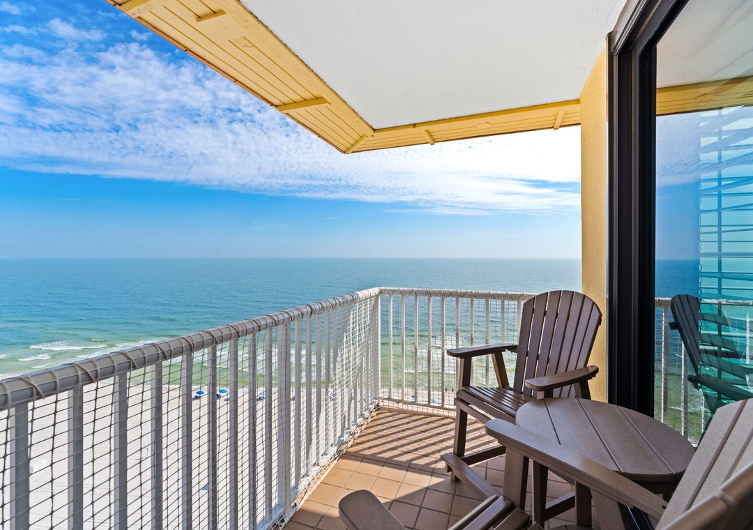 Retire to one of three luxuriously appointed bedrooms and catch some quality z’s during your much-deserved getaway! With each featuring premium mattress sets, posh bedding and high thread count linens, you’re sure to indulge in some quality rest and relaxation! The master offers a plush king bed, huge flat screen TV, a vanity area with granite countertops and a spacious closet. The master bath is equally impressive, including plenty of counter and cabinet space, fluffy 100% cotton oversized bath towel sets and deluxe bath amenities, perfect for pampering after a long day on the beach! The second bedroom boasts another king bed and the third offers a queen, with both featuring flat screen TVs and beachfront balcony access! This unit also boasts a tankless water heater for continuous hot water, newly updated AC system, solarium with electric fireplace and a full-size washer and dryer.