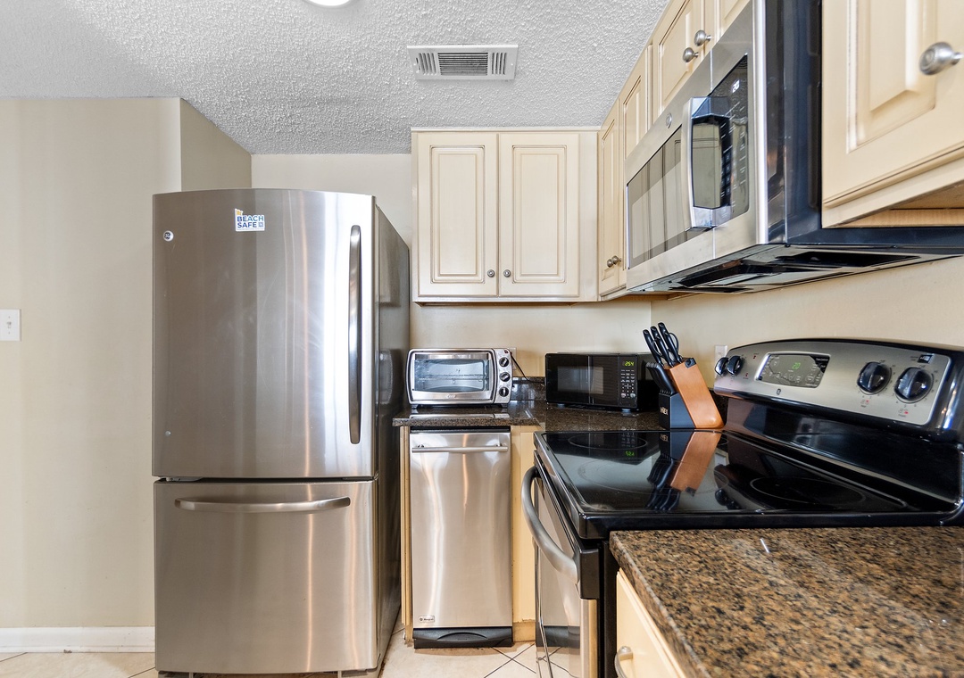 * Stainless Steel Appliances with Open Kitchen and Living Area