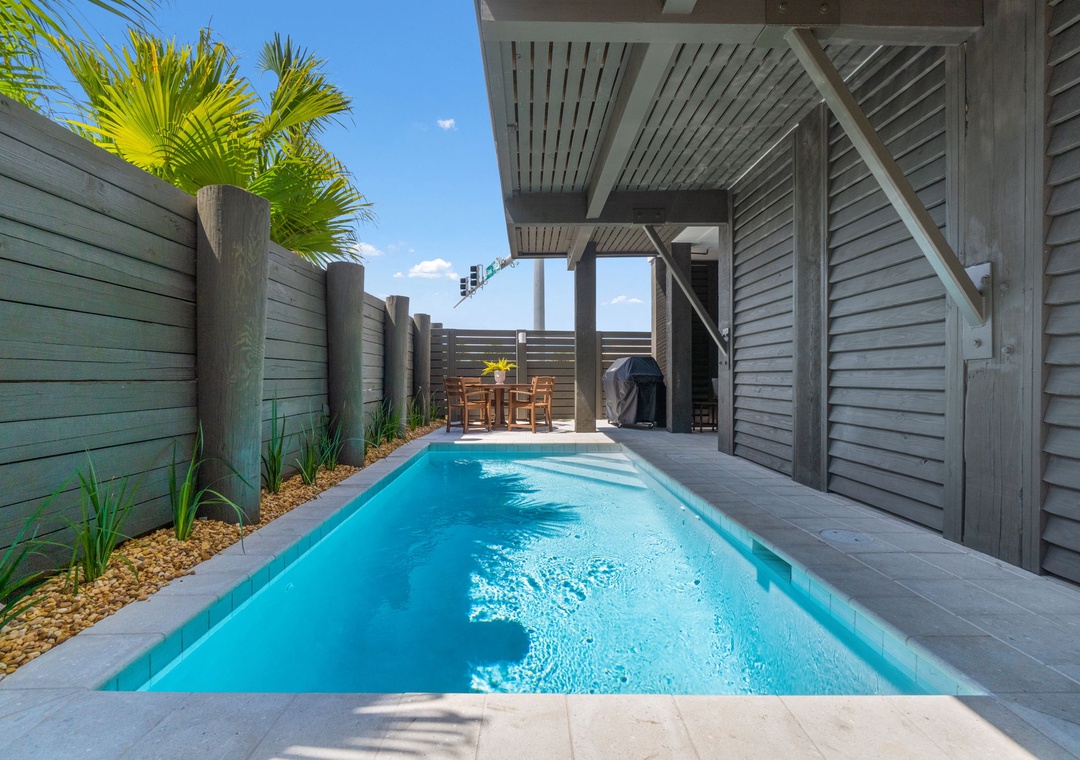 Outside, a private pool beckons, offering a refreshing respite on warm days. Immerse yourself in the crystal-clear waters, bask in the sun on the surrounding deck, or unwind in the shaded lounge area. The poolside patio presents an ideal spot for alfresco dining and entertaining, complete with a gas grill to enhance your outdoor culinary experiences.