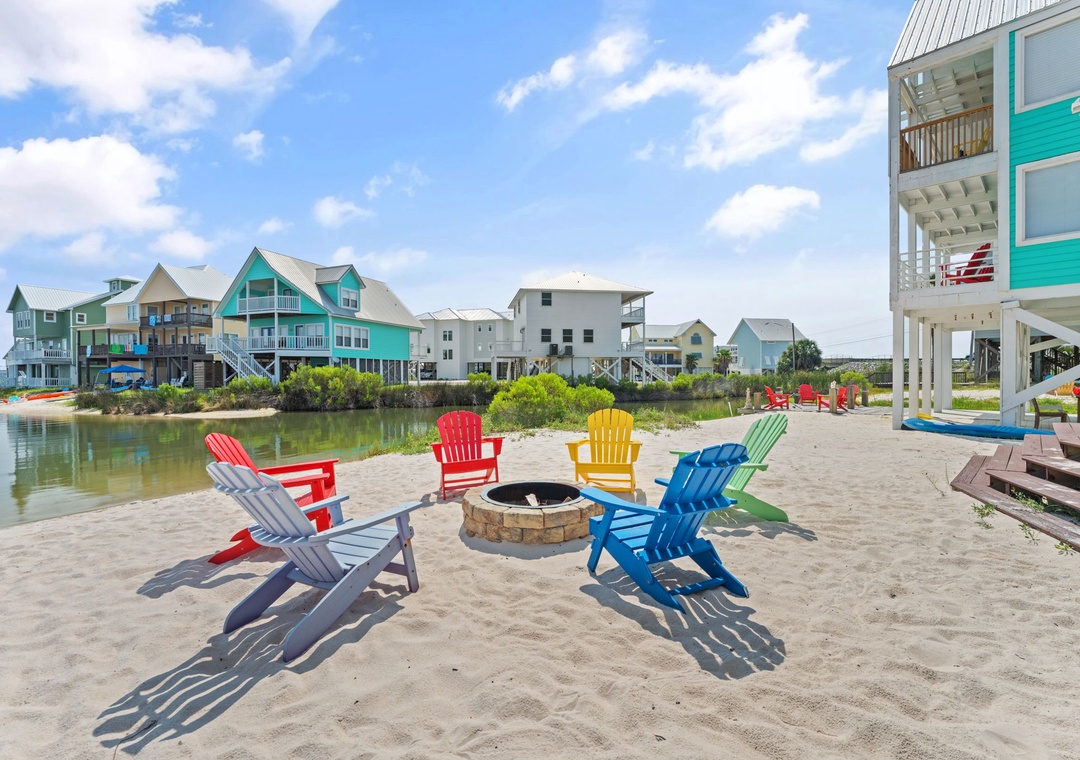 Throughout The Last Mango, you'll be greeted by a delightful beach-themed decor, exuding a cheerful and laid-back atmosphere. The exterior of the house flaunts a lively orange color, adding a touch of vibrancy to your coastal experience. Step outside, and you'll discover an enchanting sandy hangout area adorned with a fire pit, perfect for evening gatherings under the stars, roasting marshmallows, and sharing stories. The nearby lagoon invites you to take a refreshing dip and enjoy water-based activities.