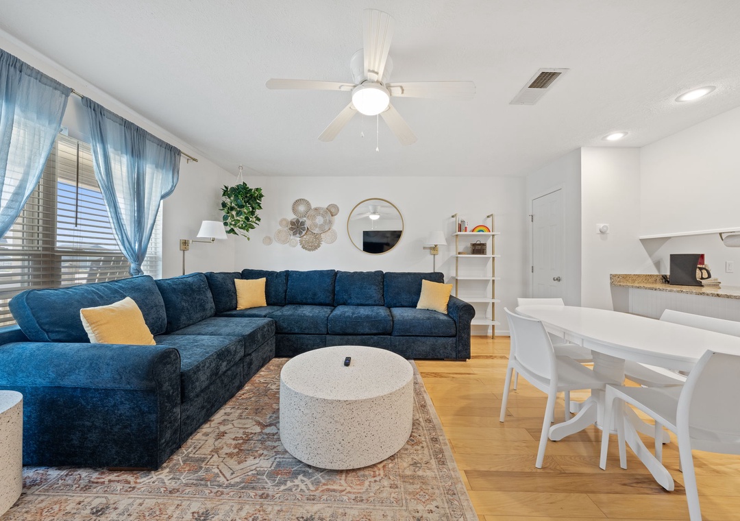 A highlight of this condo is the well-equipped kitchen, complete with modern appliances and ample countertop space, encouraging you to channel your inner chef and whip up delicious meals for everyone to enjoy. Gather around the dining table to savor these culinary delights while sharing stories and creating lasting memories.