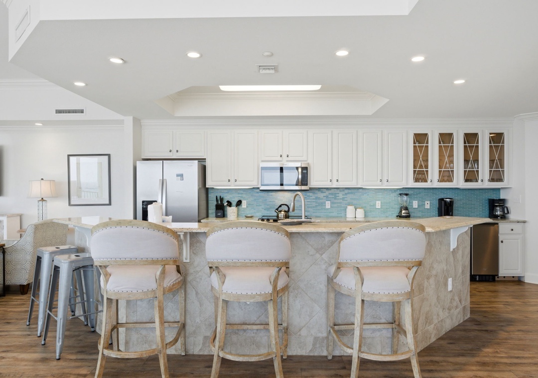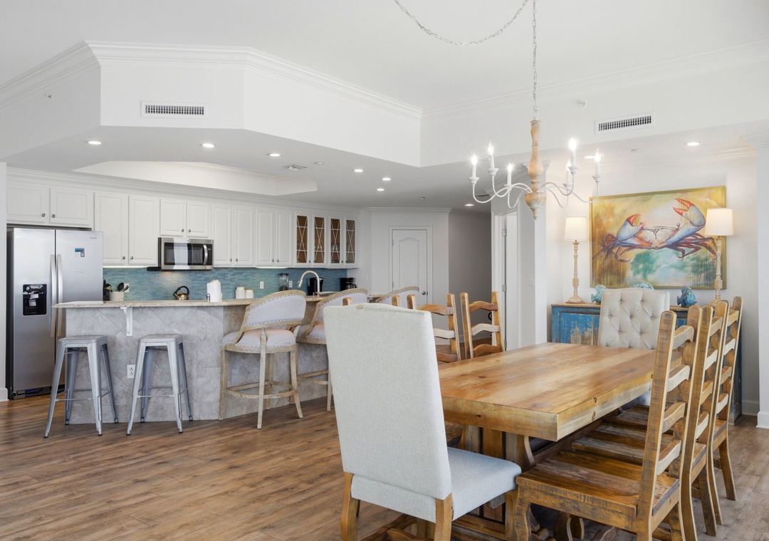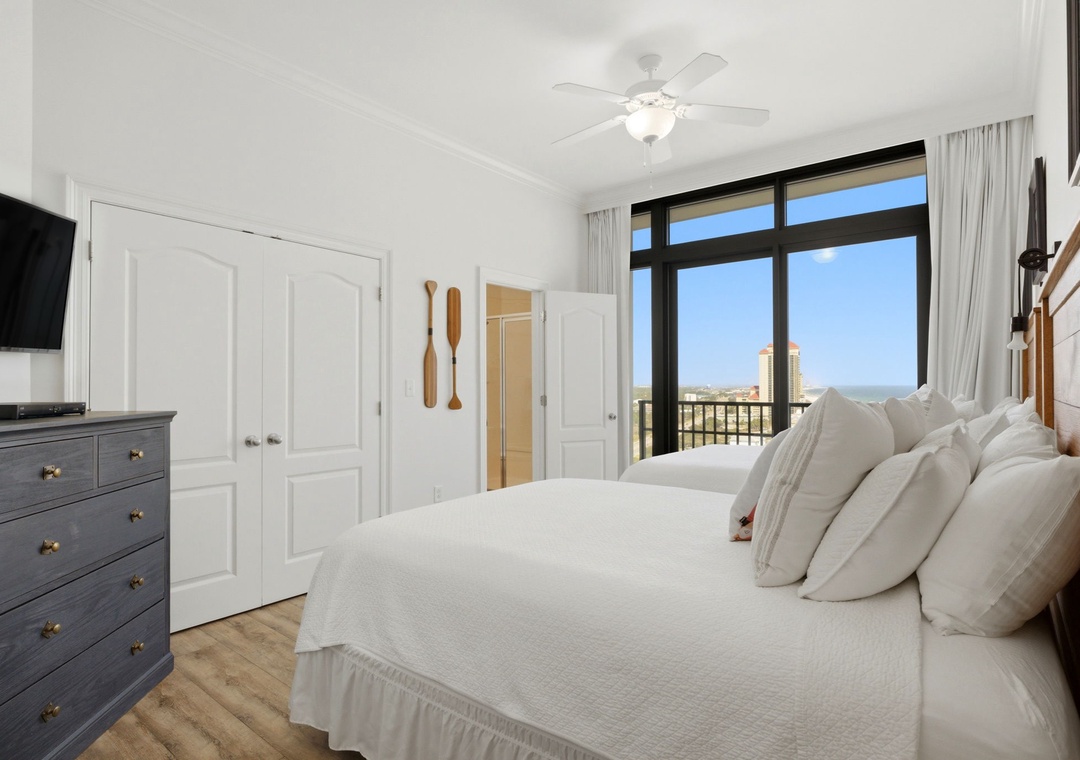 This is our second time to stay at Phoenix West II, but our first in this condo. If I had a condo here, as I hope to one day, I would decorate it exactly like this. My favorite colors and my favorite style. The two things that drew me to this particular unit was the bed configuration and the balcony. We were traveling with friends and team members from our business with no children, so the fact that there were adult beds in every bedroom was a huge plus for us. And the balcony was configured in a way that allowed us to spend a lot of time together outdoors comfortably. When we arrived, the door code we were provided didn't work, but the management was extremely responsive, and we were in during a quick phone call. The first impression of everyone when we walked in was simply, "Wow". The beds were extremely comfortable, as was all the furniture, and the kitchen was pretty well equipped for some amazing seafood meals we enjoyed during our stay. My only complaint in the kitchen is that the knives were pretty dull. I usually bring my chef knives, but didn't this time, so only myself to blame here. The building amenities are excellent, and the weather allowed us to enjoy all of them this time, and we particularly enjoyed the lazy river. We even got to enjoy a magnificent fly-by by the Blue Angels one evening as we were preparing dinner. I can't recommend this building enough, and if I travel with this group size again, I'll definitely book this unit. Just gorgeous.