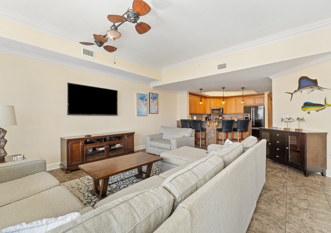 We were here over Christmas break and we thoroughly enjoyed our stay. The condo is so nice and big with plenty of seating in the LR. There's huge big screen TV in the LR and each bedroom has wall mounted TVs. Beds were very comfortable, and the bathrooms are big with plenty of storage space. We had to call the management company about the DVD player not working in the LR, and they sent someone out promptly the next morning to resolve the issue. The unit was very clean upon our arrival. The kitchen has everything you would need for cooking and a great bar area with a separate ice maker. The complex is great with an indoor pool that is huge, an outdoor pool and a lazy river. The elevators are really fast as well! Luxury Coastal Vacations made the whole process seamless from reserving the condo to checking in and out. We would not hesitate to use them again for a vacation rental and plan to do so in the future.