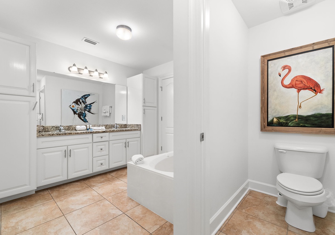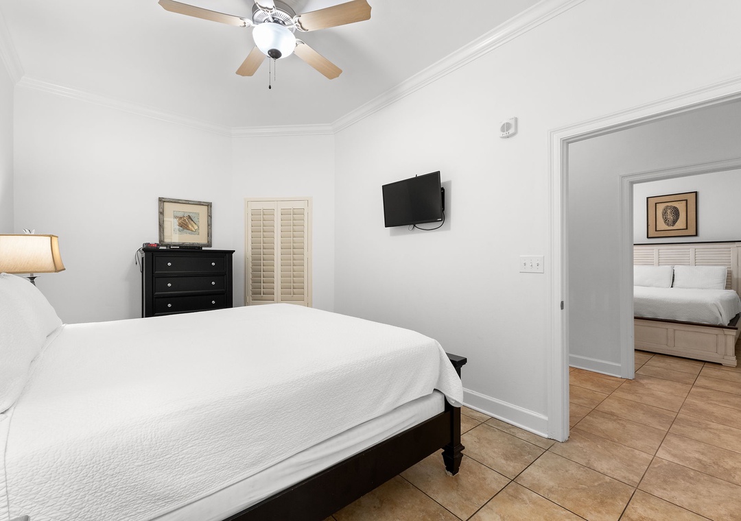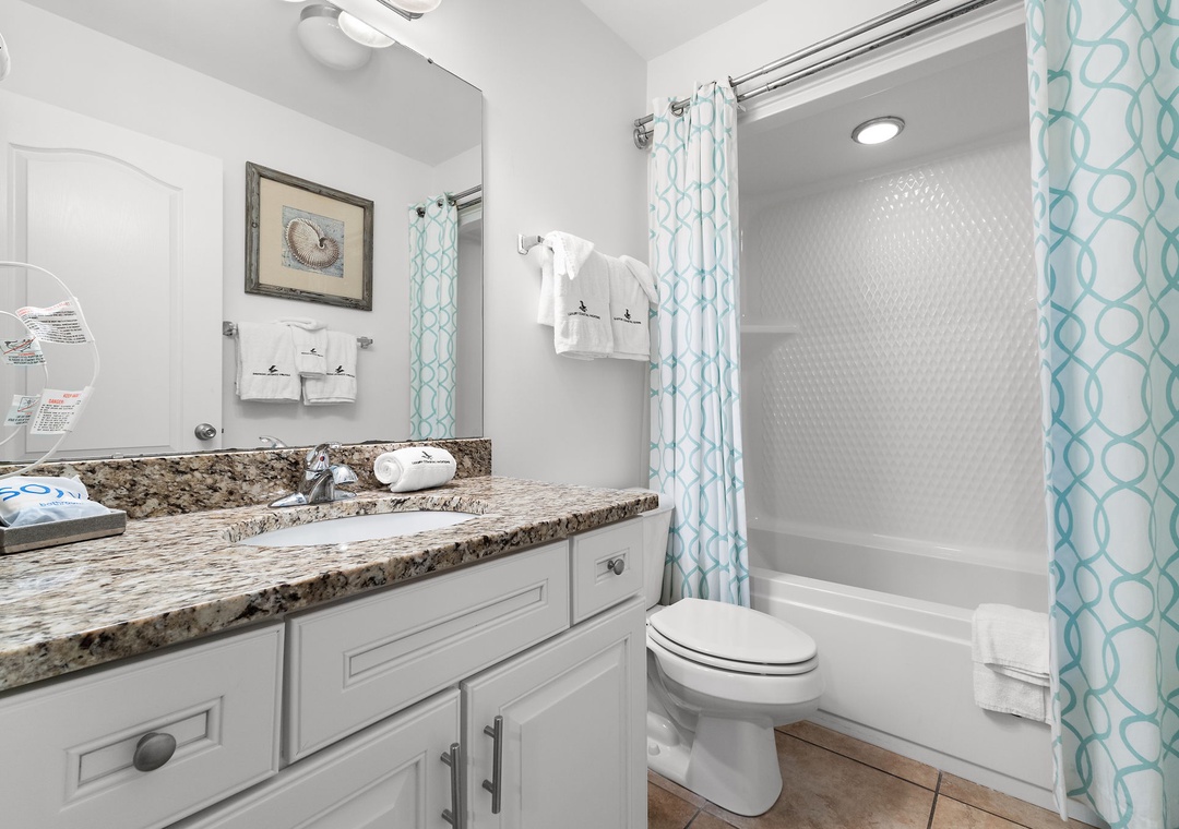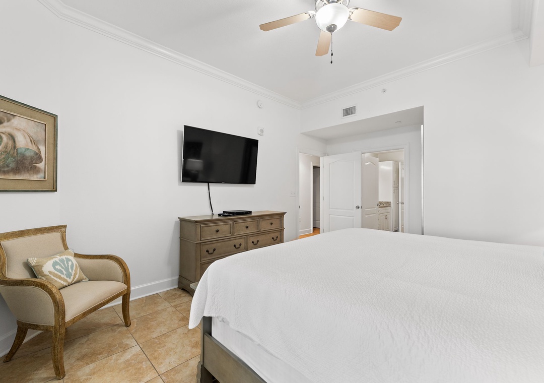 The master suite is the perfect oasis to ensure you’re well rested during your getaway, boasting a king bed with premium mattress, deluxe bedding, a comfy sitting area and another large wall-mounted flat screen! The attached master bath was designed with your relaxation and rejuvenation in mind as well, featuring a large jetted garden tub, separate glass walk-in shower, and double vanity with granite countertops! The second bedroom offers another king and the third hosts two queens, and with a queen sleeper sofa in the living room this sprawling unit accommodates up to 10 comfortably! Each bedroom offers flat screen television, deluxe mattresses and bedding, private baths and fabulous views! There is an additional full bath for guests.