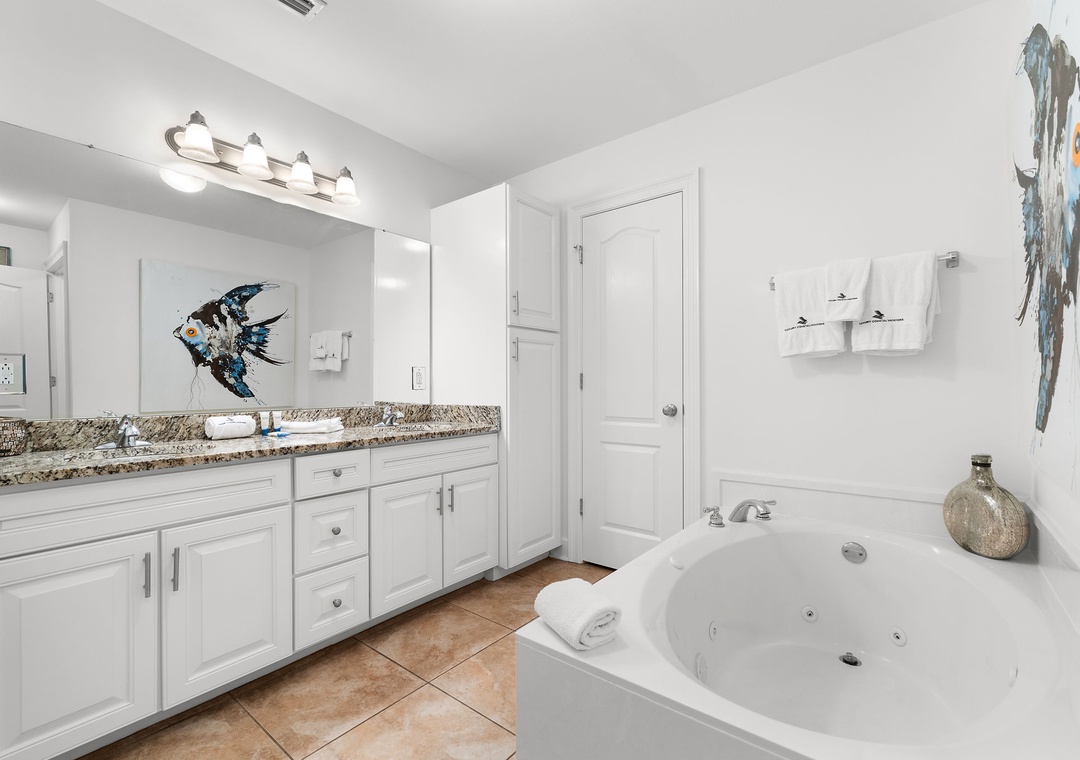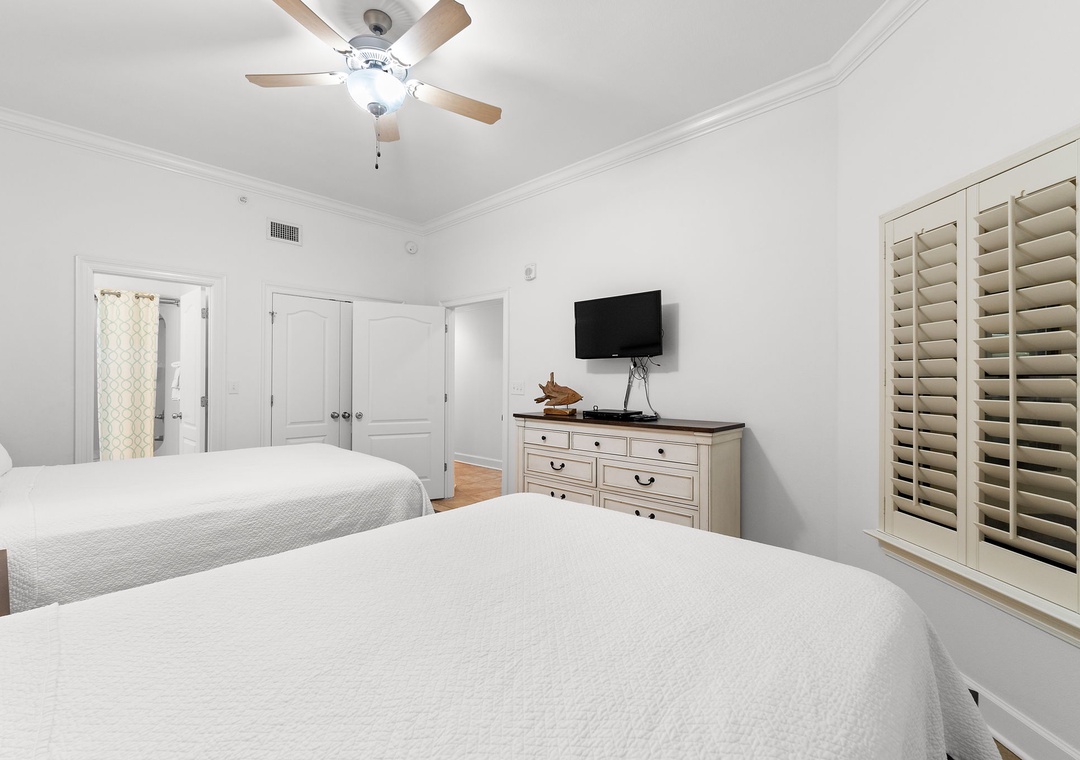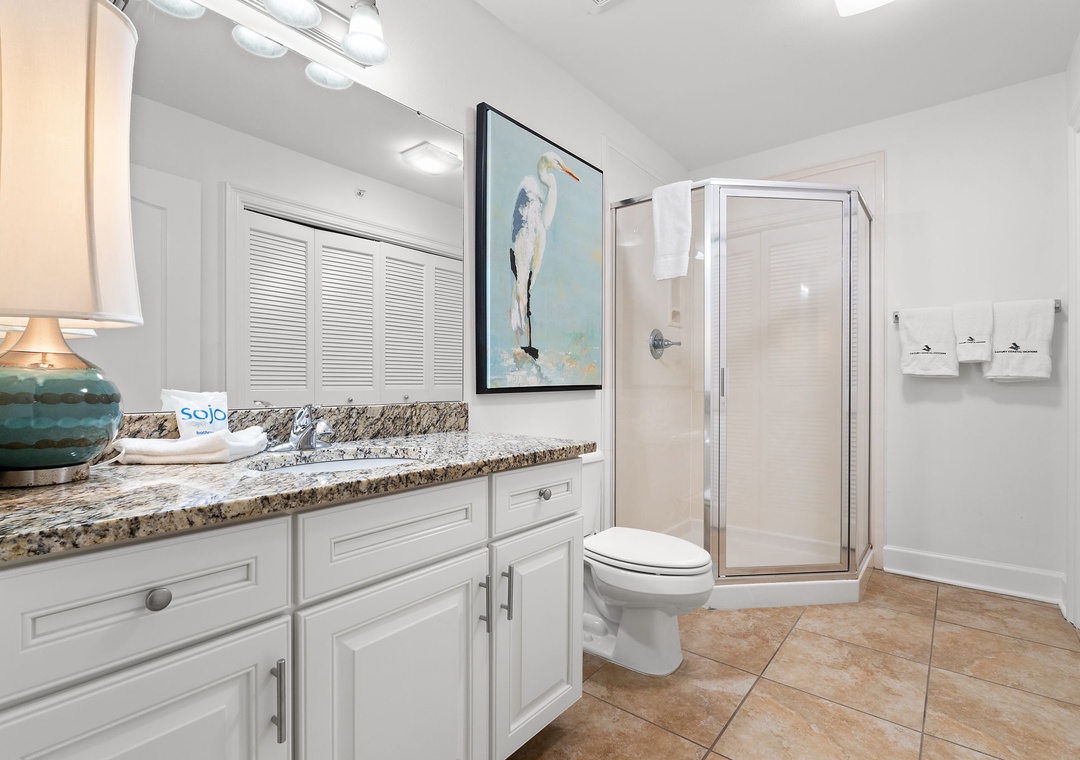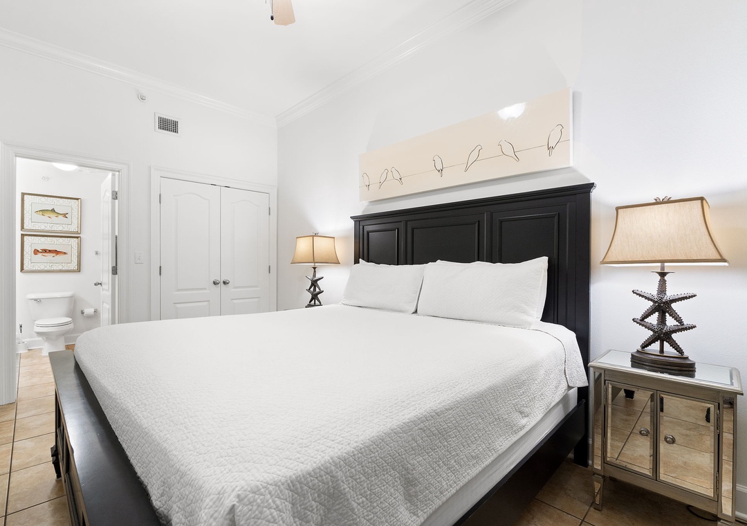 The master suite is the perfect oasis to ensure you’re well rested during your getaway, boasting a king bed with premium mattress, deluxe bedding, a comfy sitting area and another large wall-mounted flat screen! The attached master bath was designed with your relaxation and rejuvenation in mind as well, featuring a large jetted garden tub, separate glass walk-in shower, and double vanity with granite countertops! The second bedroom offers another king and the third hosts two queens, and with a queen sleeper sofa in the living room this sprawling unit accommodates up to 10 comfortably! Each bedroom offers flat screen television, deluxe mattresses and bedding, private baths and fabulous views! There is an additional full bath for guests.