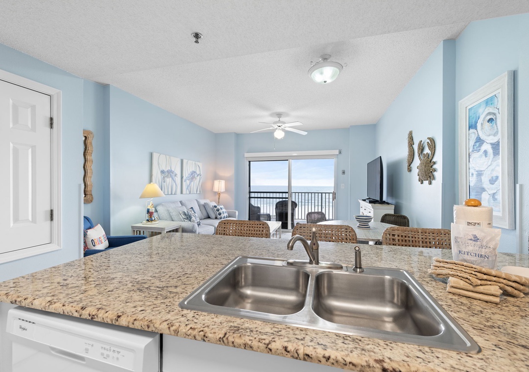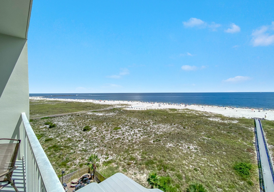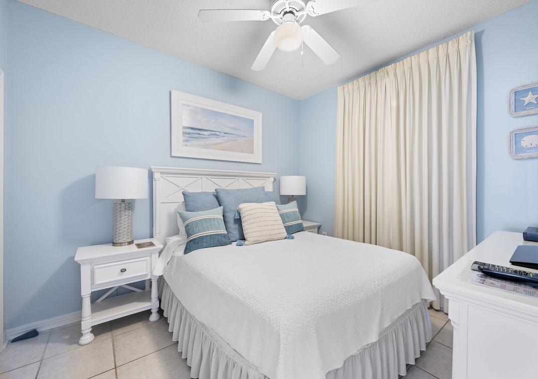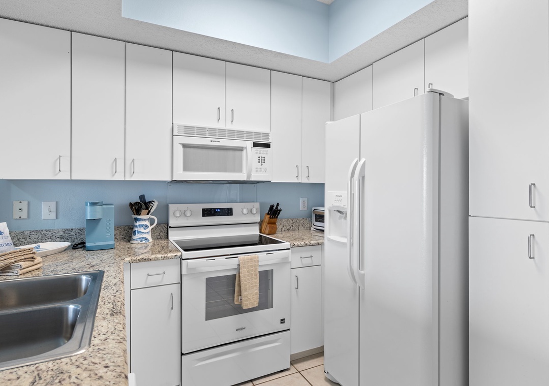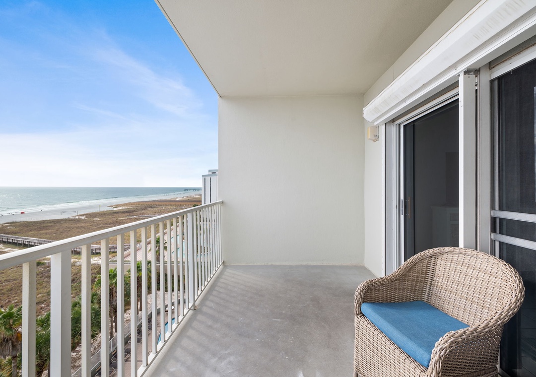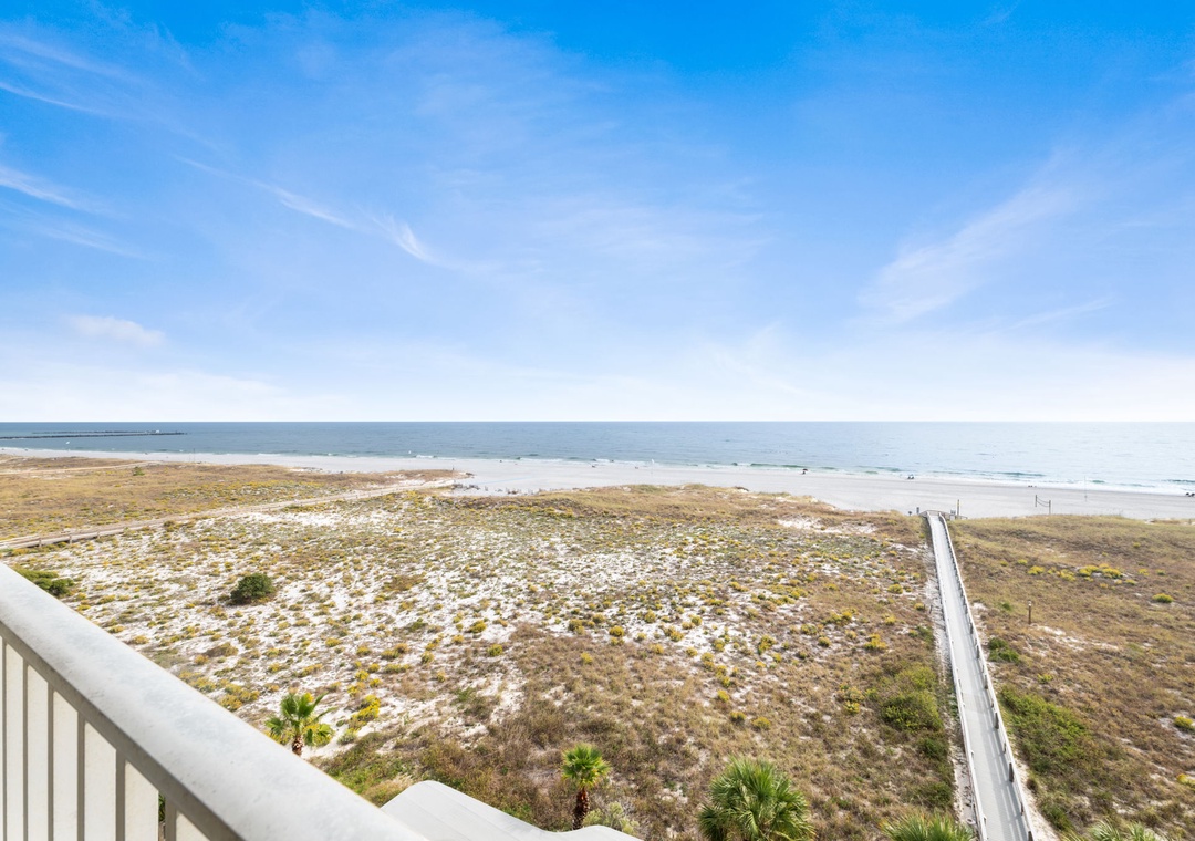 Inside, the gourmet kitchen comes equipped with all the appliances, utensils, and cookware you need to prepare meals with ease. The open-concept living space ensures that Gulf views can be enjoyed from nearly every corner of the condo. The bedroom features a plush queen bed with deluxe bedding and a wall-mounted flat-screen TV, while the ensuite bath offers a convenient shower/tub combo. A bonus bunk alcove in the hallway provides the perfect space for kids, and the sleeper sofa makes it easy to accommodate up to six guests. Additional conveniences include a full-size washer and dryer and oversized bath towel sets. Book your stay at Tidewater 503 and experience the vacation of your dreams!
