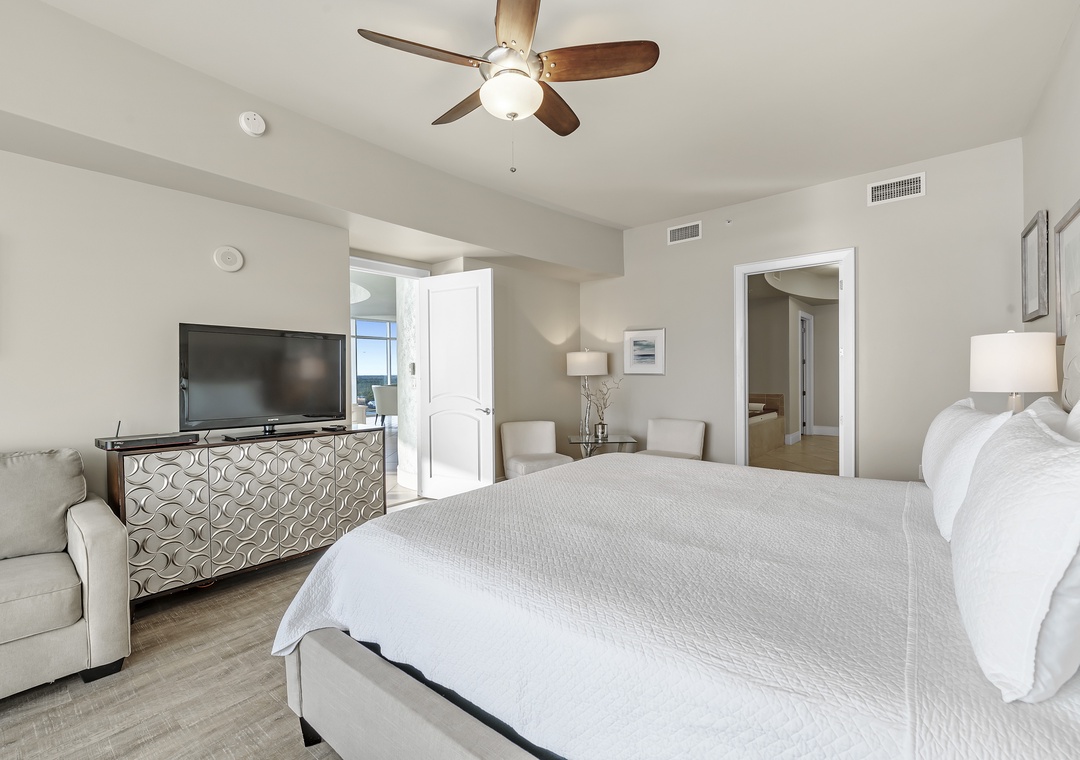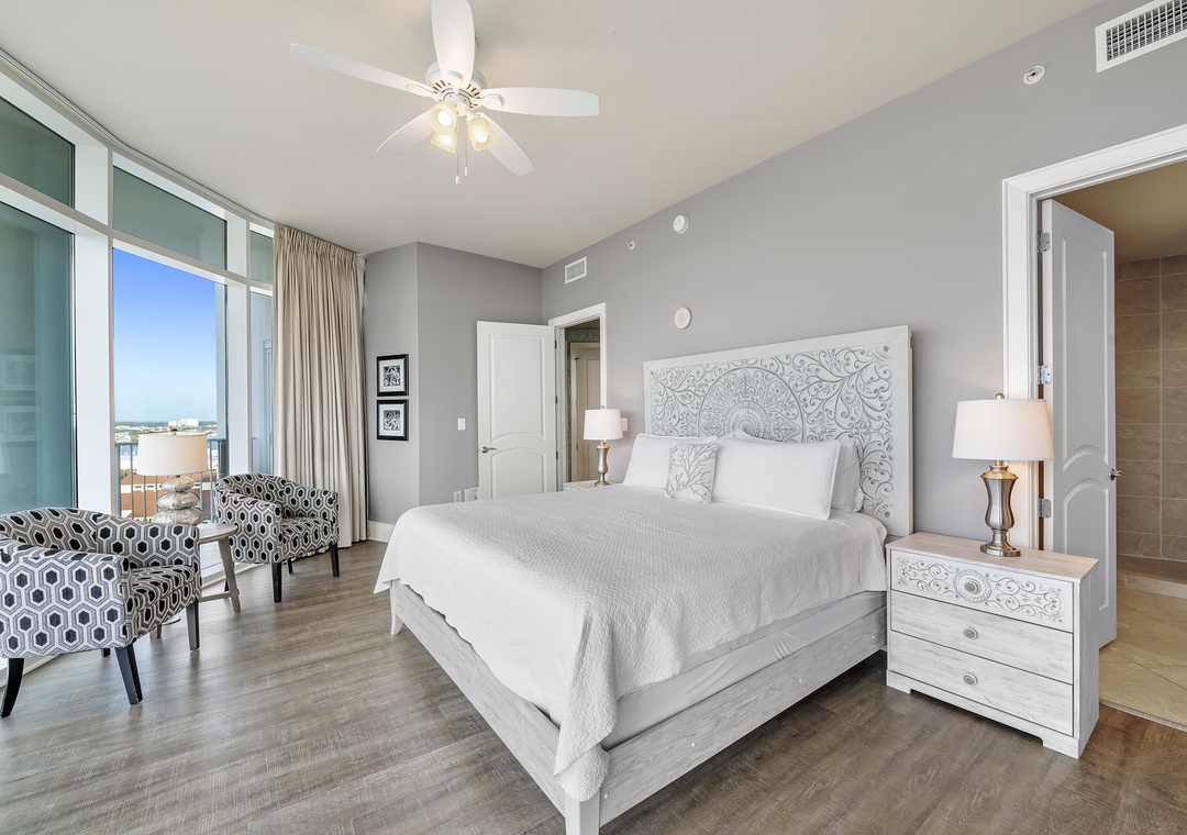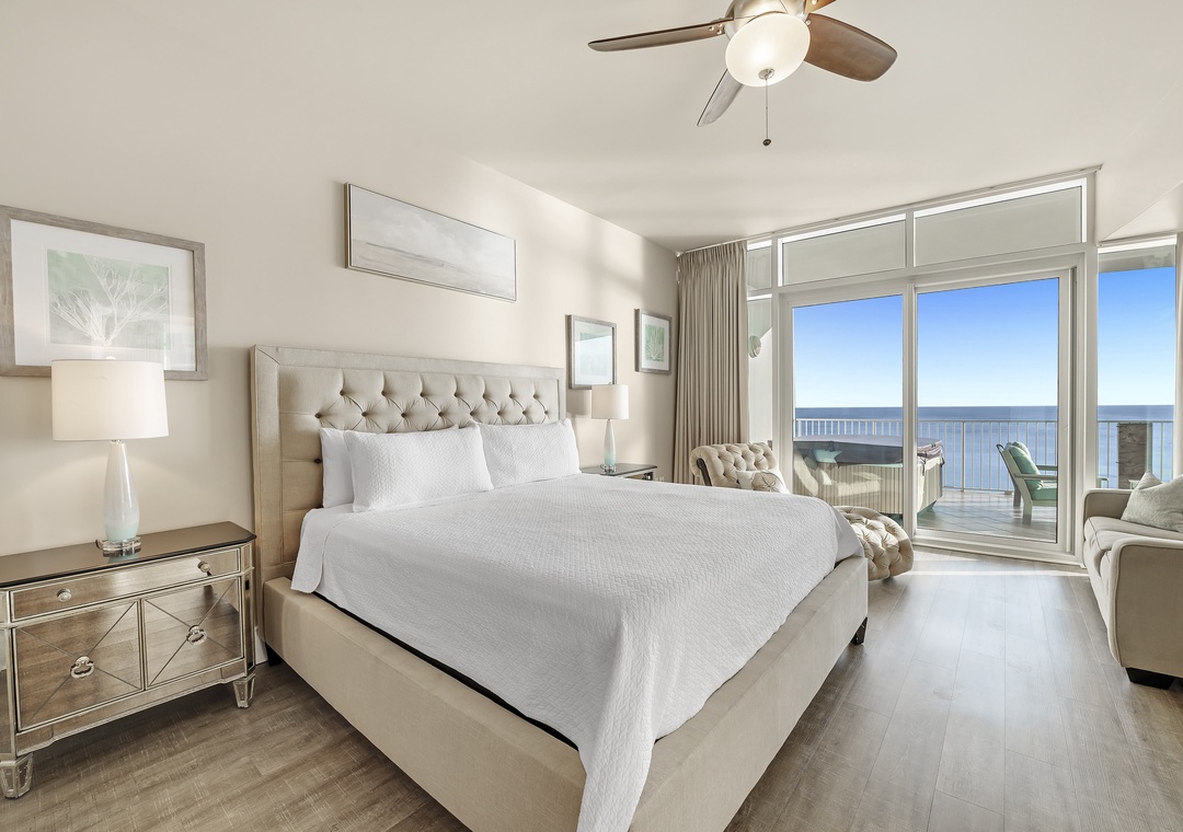 1st Bedroom: King Bed with Ensuite and Balcony Access