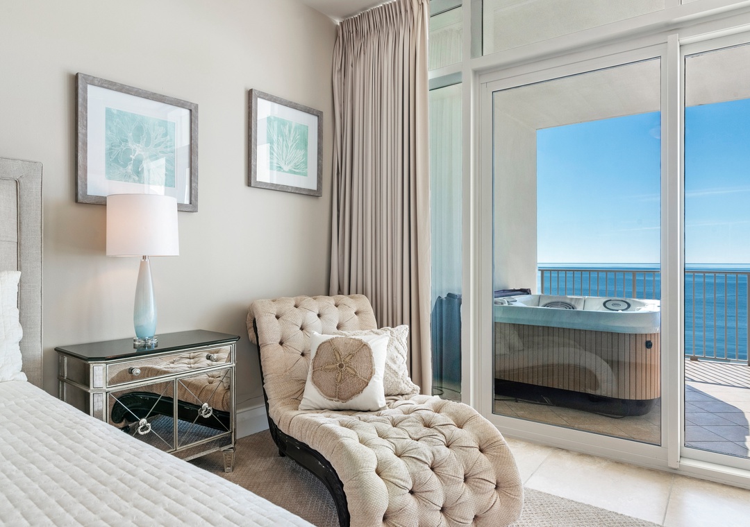 Experience luxury like never before at this professionally decorated 10th-floor, 4-bedroom, 4.5-bath corner unit at Turquoise Place. Located along 900 feet of pristine Gulf Coast shoreline, this stunning resort is a haven of opulence and style. With chic furnishings, upgraded appliances, and breathtaking, unobstructed Gulf views, this 3,600 sq. ft. unit is designed for ultimate comfort and relaxation. The oversized 1,200 sq. ft. balcony features a private hot tub and gas grill, making it the perfect spot to unwind while taking in the sugar-white sands and emerald waters.
