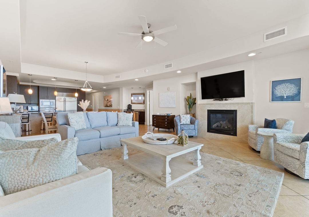 Experience unparalleled luxury in this brand-new, custom-designed condo perched on the 27th floor. With 10-foot ceilings and sweeping Gulf views, this spacious unit offers three large bedrooms and 3.5 baths, accommodating up to 12 guests comfortably. The primary and second bedrooms feature king beds with the second bedroom also having a twin loveseat sleeper, while the third offers two queen beds and a twin loveseat sleeper. A queen pullout in the living room provides additional sleeping space. Each bedroom comes with its own upscale bathroom, and a half bath is conveniently located in the hallway. The gourmet kitchen is a chef’s dream, equipped with high-end stainless appliances like a Sub Zero fridge/freezer, Viking five-burner gas stove, and even a PowerXL AirFryer. For added convenience, the wet bar includes a wine fridge and separate ice maker, and the unit features a private laundry with high-efficiency appliances.