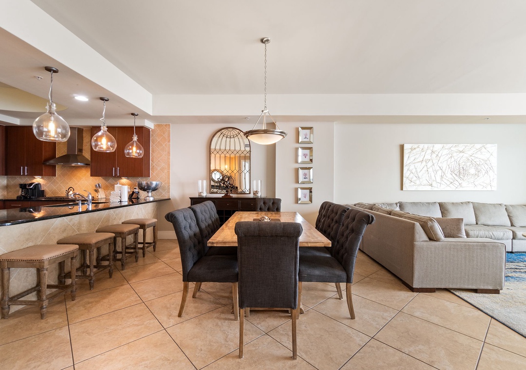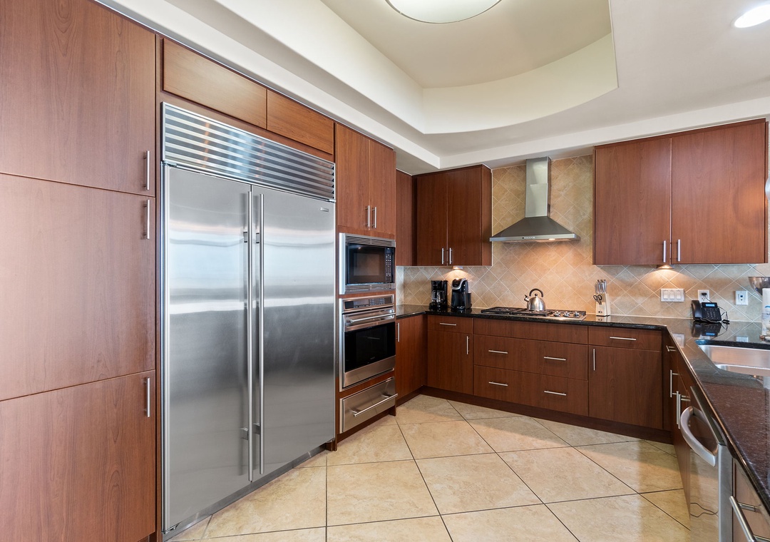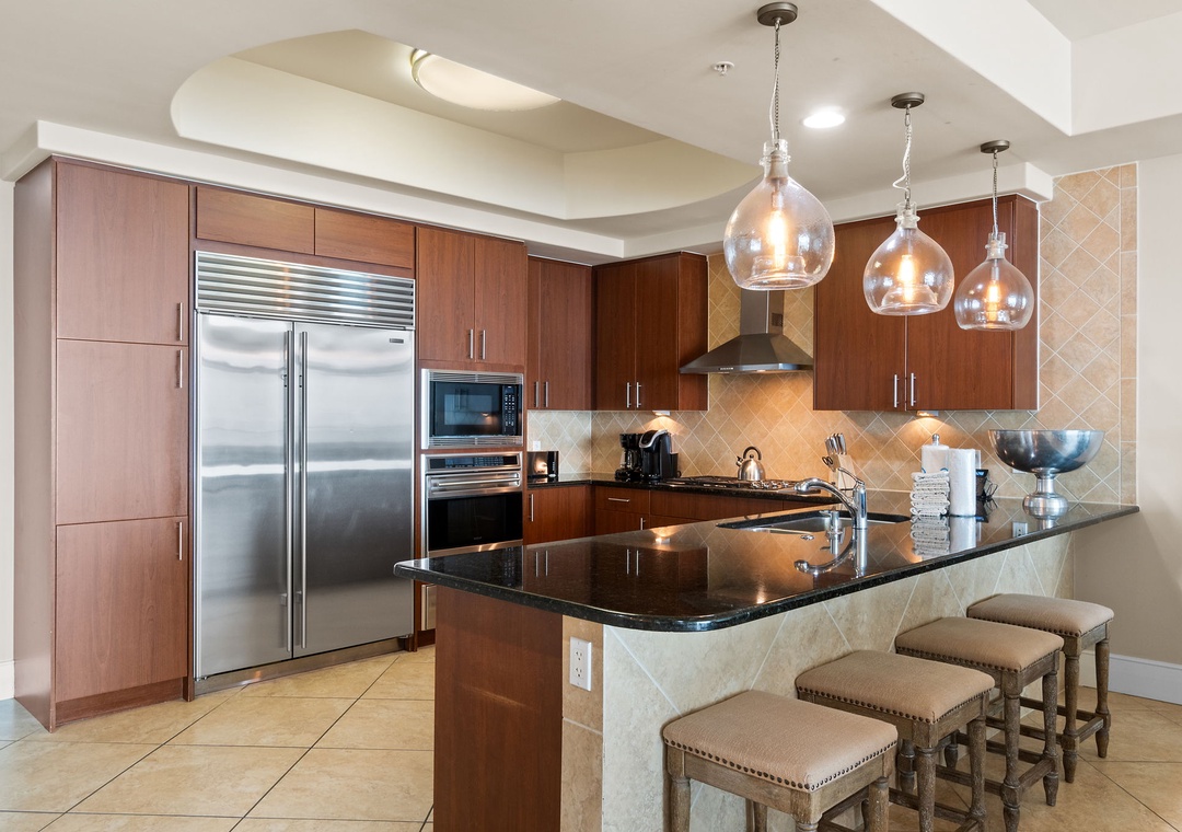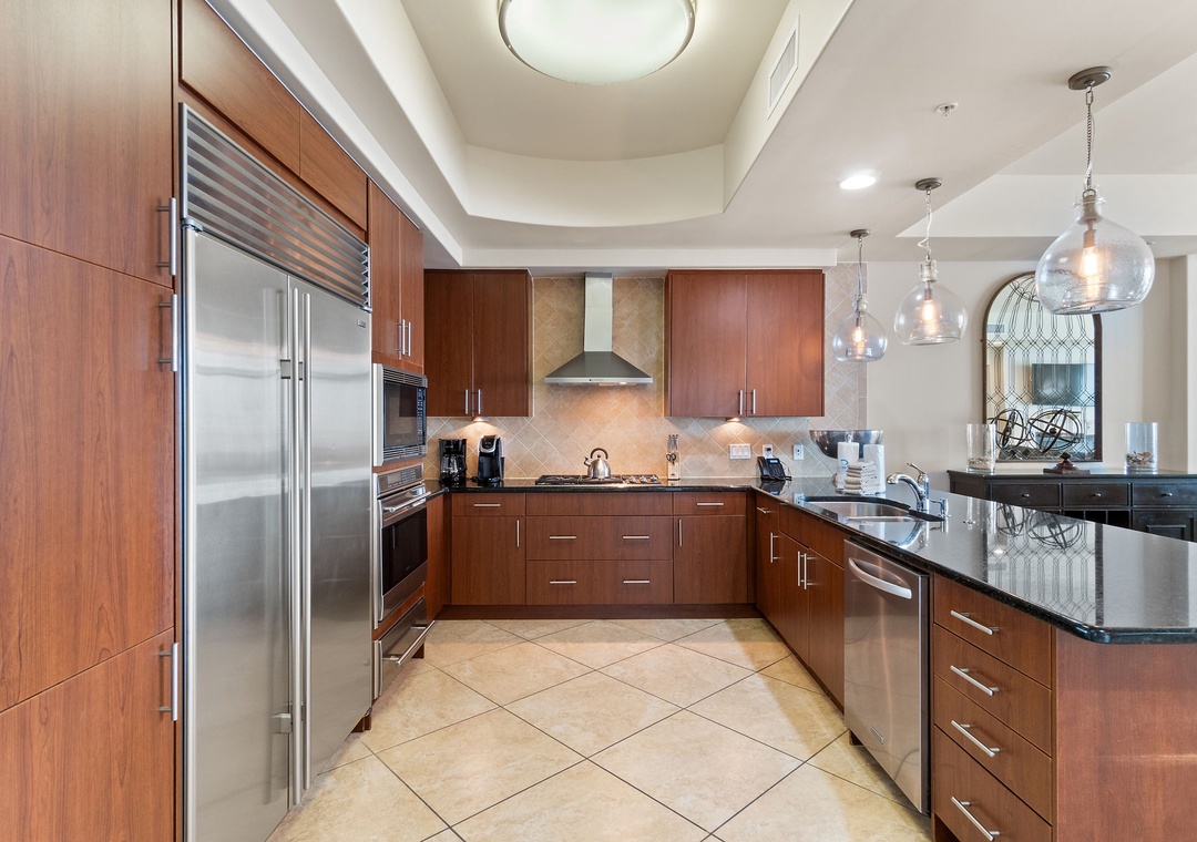 The kitchen is sure to impress even the most seasoned chef, offering granite countertops, a gas cooktop, stainless steel appliances from top brands including KitchenAid, Wolf and Sub-Zero, a breakfast bar with seating for three, and so much more! The dining area affords seating for 6 and a wet bar with separate ice maker and wine chiller-perfect for mixing your favorite cocktail and entertaining guests!