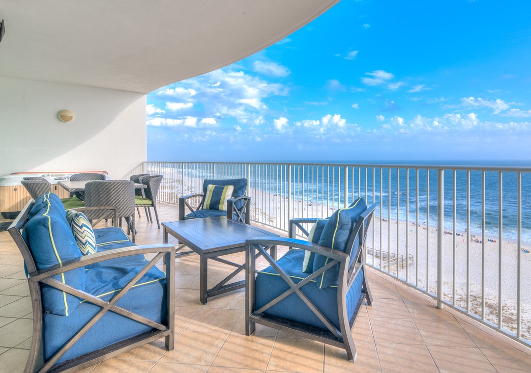 Perhaps the most important feature of this fabulous condo is the expansive balcony, where you can enjoy lounging on the comfortable outdoor furniture or prepare a gourmet dinner on the built-in grill. Spend your evening relaxing in the jetted hot tub with a glass of wine while listening to the waves crashing gently below!