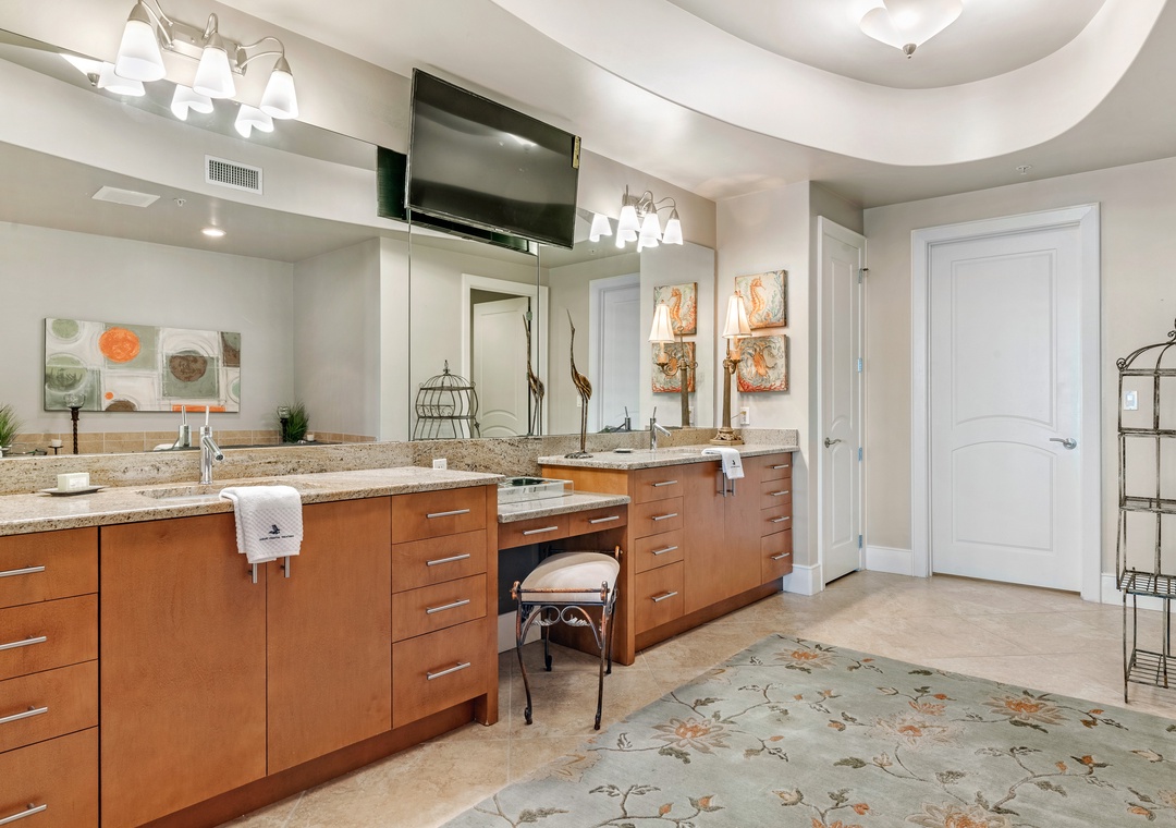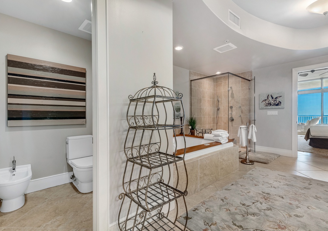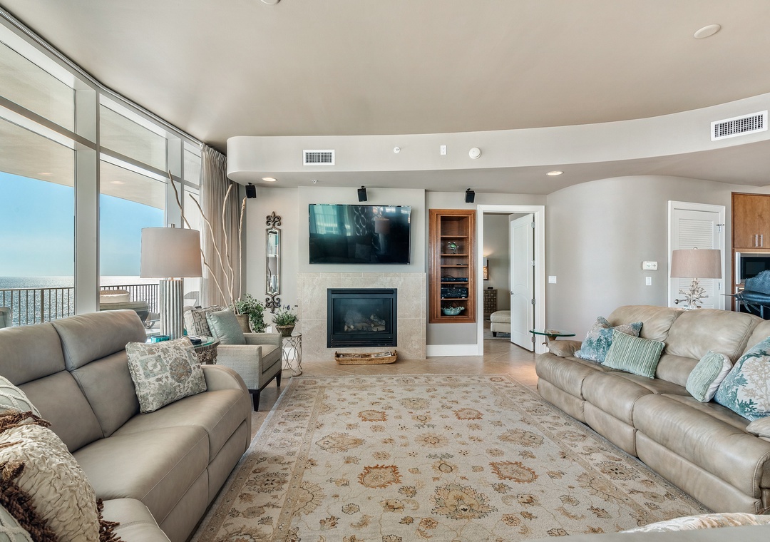 Each bedroom is a retreat of its own, featuring king-sized beds, flat-screen TVs, luxury linens, and private ensuite bathrooms. The master suite is a true sanctuary with Gulf-front balcony access, a spa-like master bath with a Jacuzzi tub, a glass walk-in shower, and even a wall-mounted flat screen in the bathroom. The second and third bedrooms also offer Gulf views, while the fourth bedroom ensures all guests enjoy their own serene space. A queen sleeper sofa in the living room provides additional sleeping accommodations. Book today and indulge in the unparalleled luxury of Turquoise Place, where every moment is designed to be unforgettable.