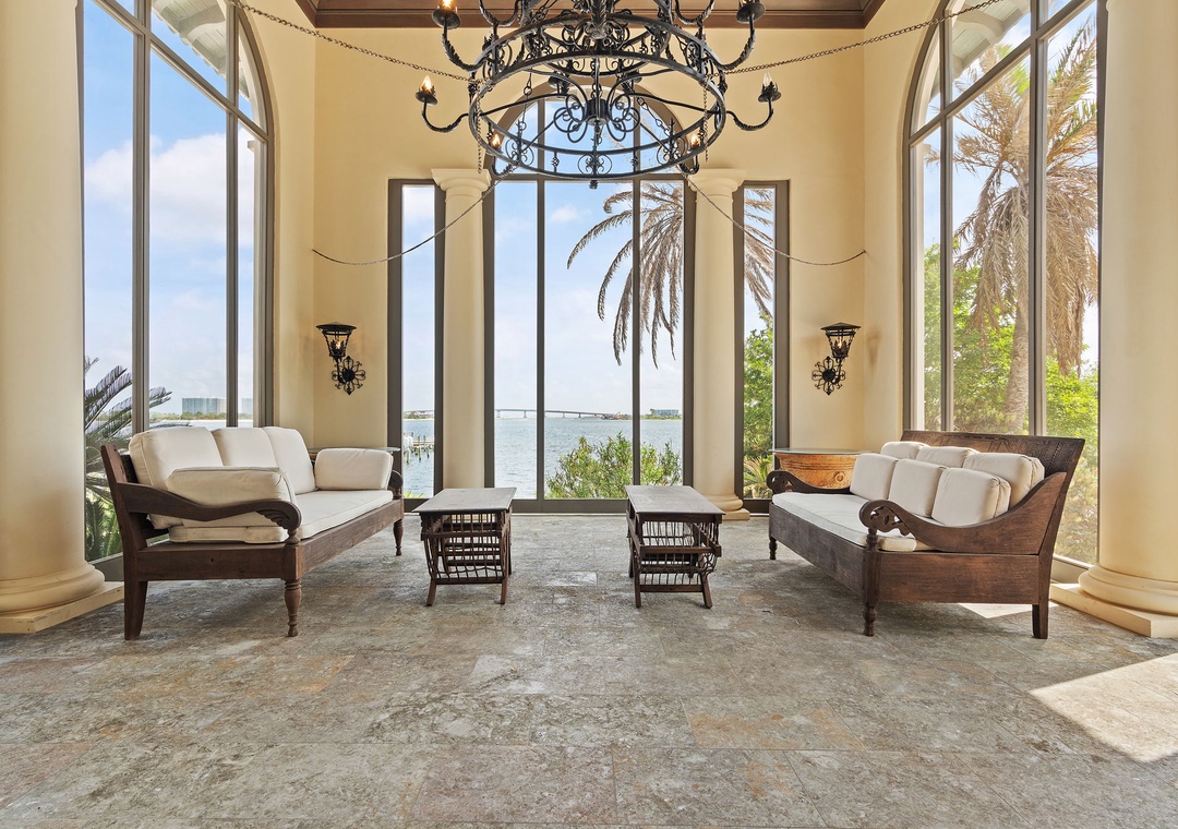 Step outside and soak in the views from the screened-in patio or lounge on the marble-tiled terrace with a Kamado Joe smoker, Charbroil grill, and a beachfront picnic area just steps from the sand. The private boat slip, 3-car garage, and whole-home generator add to the ease and luxury of your stay.