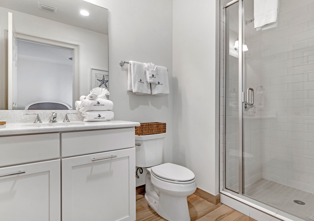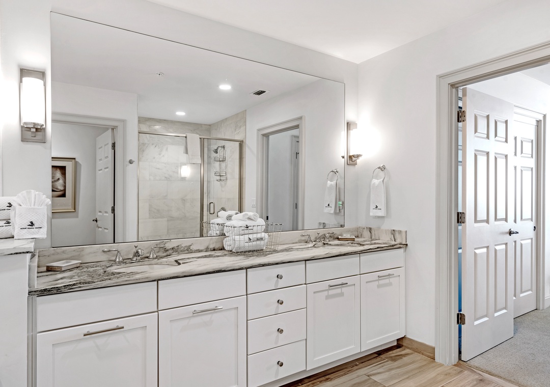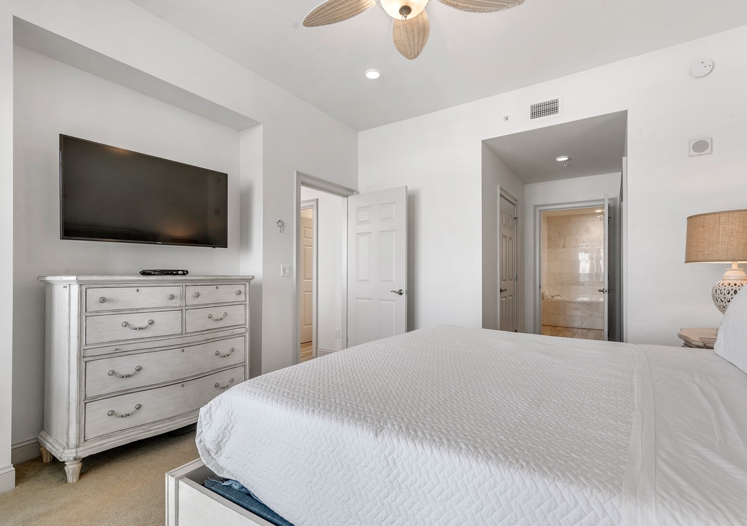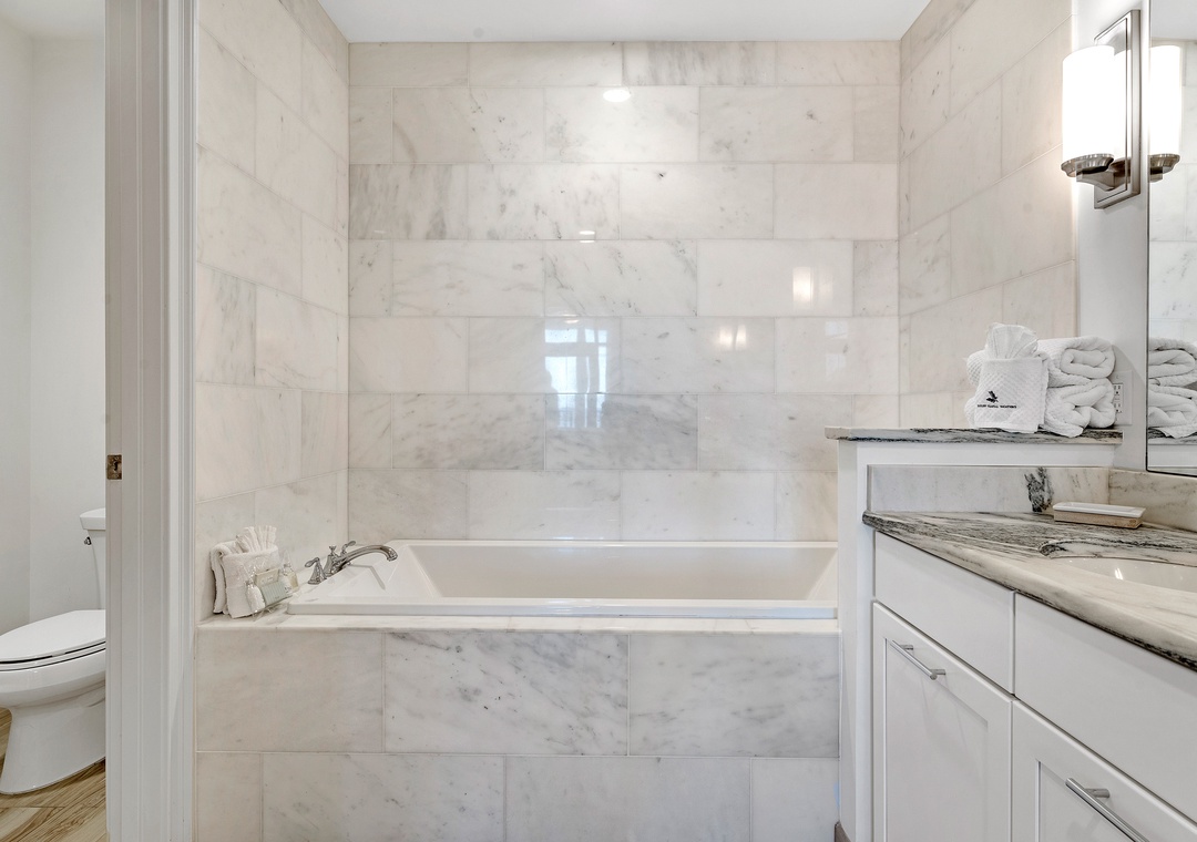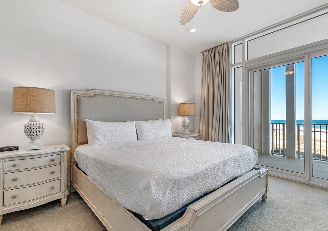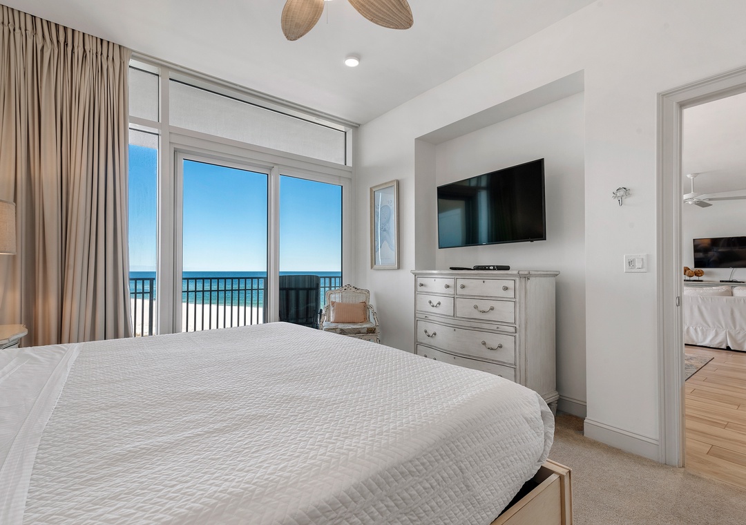 Retire to one of three luxuriously appointed bedrooms and catch some quality z’s during your much-deserved getaway. With each featuring premium mattress sets, posh bedding, high thread count linens and flat screen TVs, you’re sure to indulge in some quality rest and relaxation on your coastal retreat. The master suite offers beachfront balcony access, so you can wake up and look out over the magnificent turquoise waters and soft white sands with only a few steps from your comfy king bed! The second bedroom includes another king bed while the third bedroom offers 2 full beds. Another favorite is undoubtedly the gorgeous master bath, boasting a huge soaking tub and separate frameless walk-in glass shower with seating, posh marble tile throughout, and fluffy oversize 100% cotton oversized bath towel sets, creating a tranquil spa-like ambiance perfect for pampering after a long day on the beach.