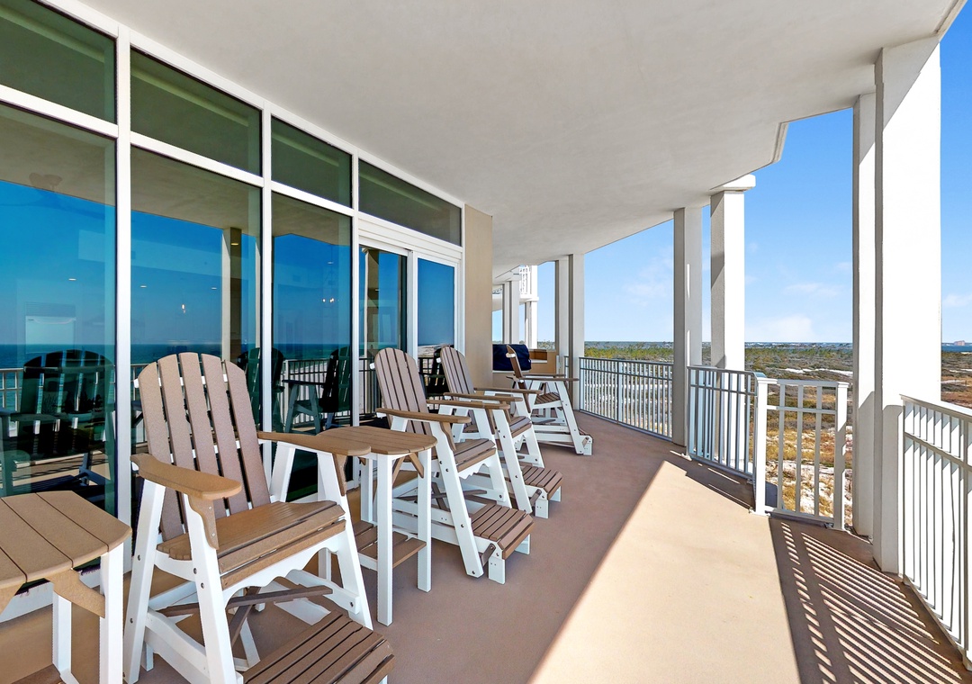 * 1,000-square-foot panoramic balcony with Gulf, pool, and park views