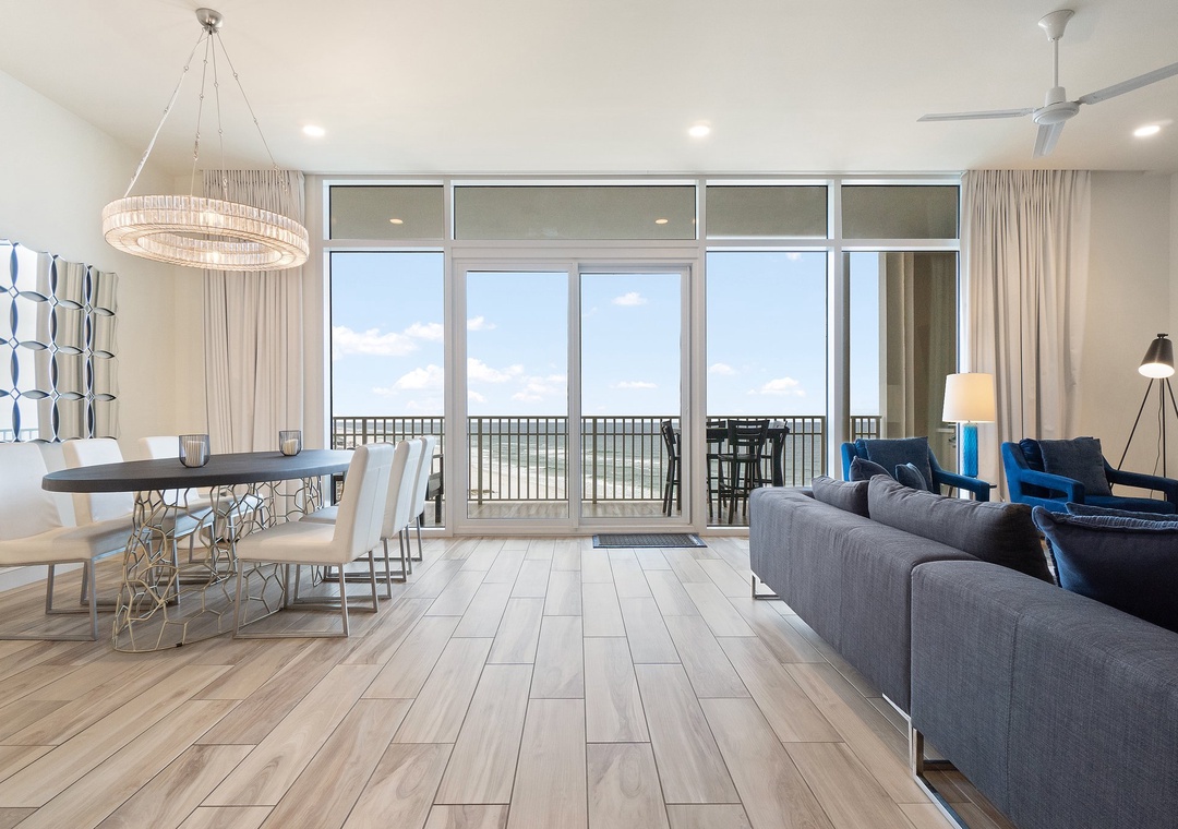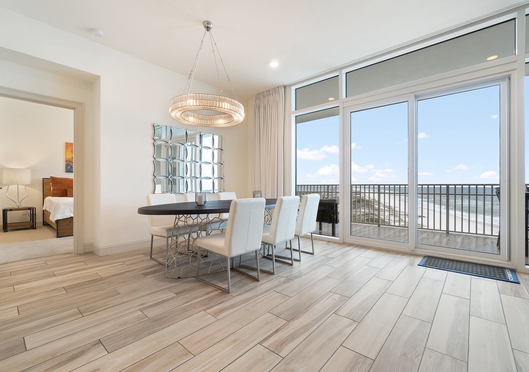 Welcome to Vista Del Mar 603, a 3-bedroom, 3.5-bath coastal masterpiece perched on the 6th floor of one of Perdido Key’s most exclusive beachfront communities. This modern showplace boasts unobstructed Gulf views, sleek designer furnishings, and a spacious open layout perfect for entertaining and relaxation. The gourmet kitchen features top-of-the-line stainless steel appliances, granite counters, and a hand-crafted dining table for 8, all framed by floor-to-ceiling glass showcasing the turquoise waters beyond.