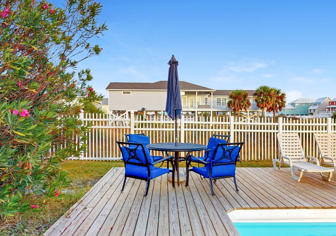 Guests love the huge heated pool, perfect for lounging in the sun or cooling off after a day at the beach. The outdoor dining and lounging areas make it easy to enjoy meals and sunset cocktails in true Gulf Shores style.