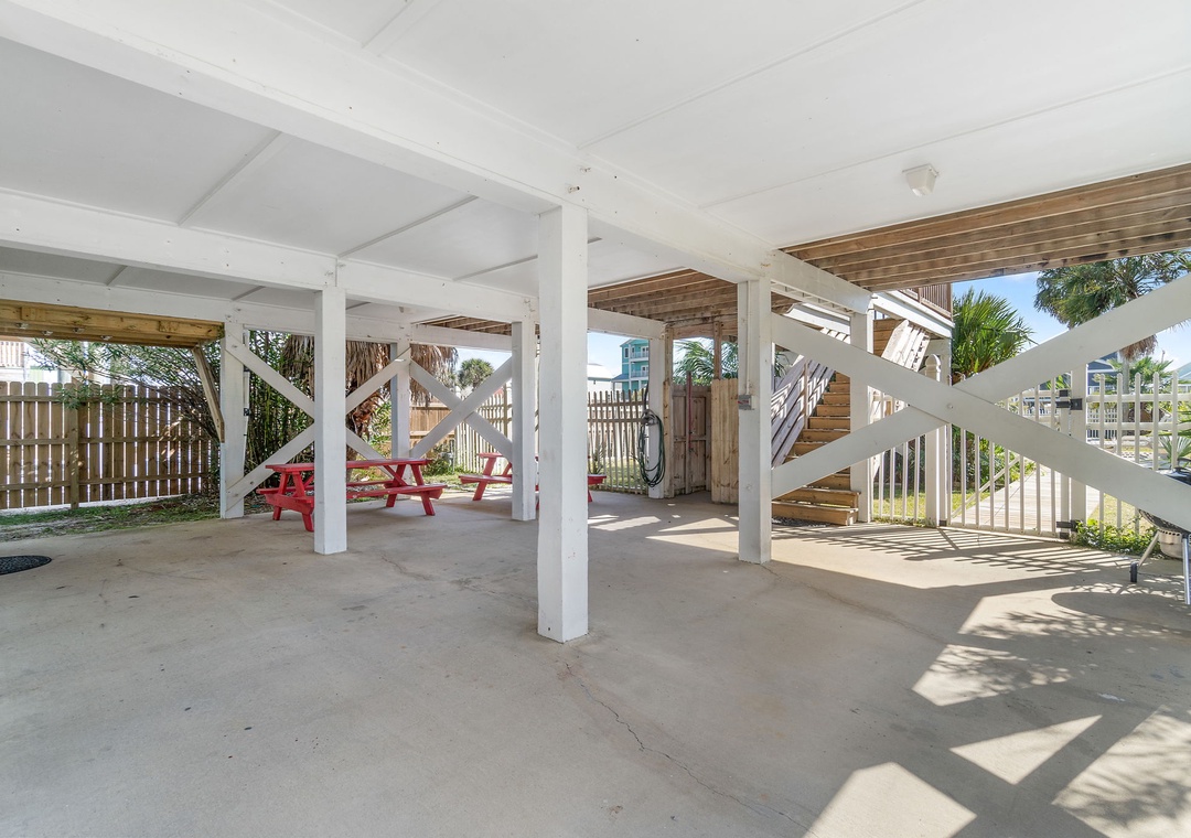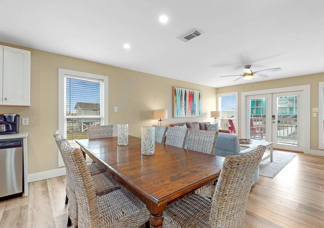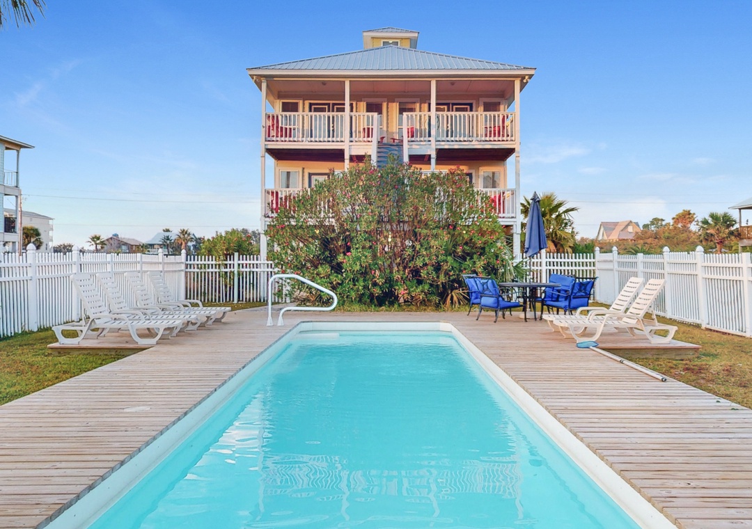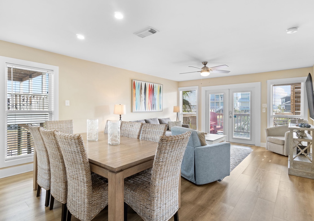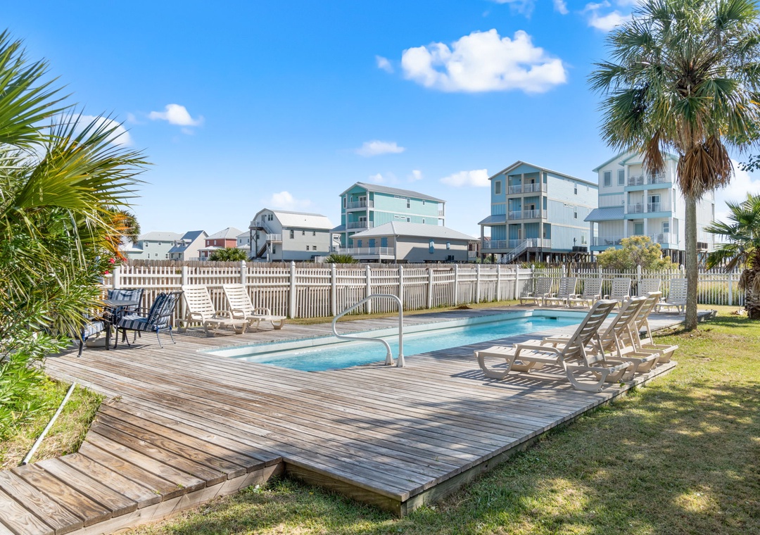 The downstairs unit sleeps up to eight guests, with a king primary bedroom, two queen bedrooms, and a queen sleeper sofa for additional accommodations. Step outside to enjoy the resort-style pool, complete with outdoor dining and lounge seating ideal for evening cocktails or sunny afternoon relaxation. With nearby beach access, local restaurants, and Gulf Shores attractions all within walking distance, When Pigs Fly (Downstairs) offers the perfect blend of comfort, location, and laid-back coastal charm for your next beach getaway.