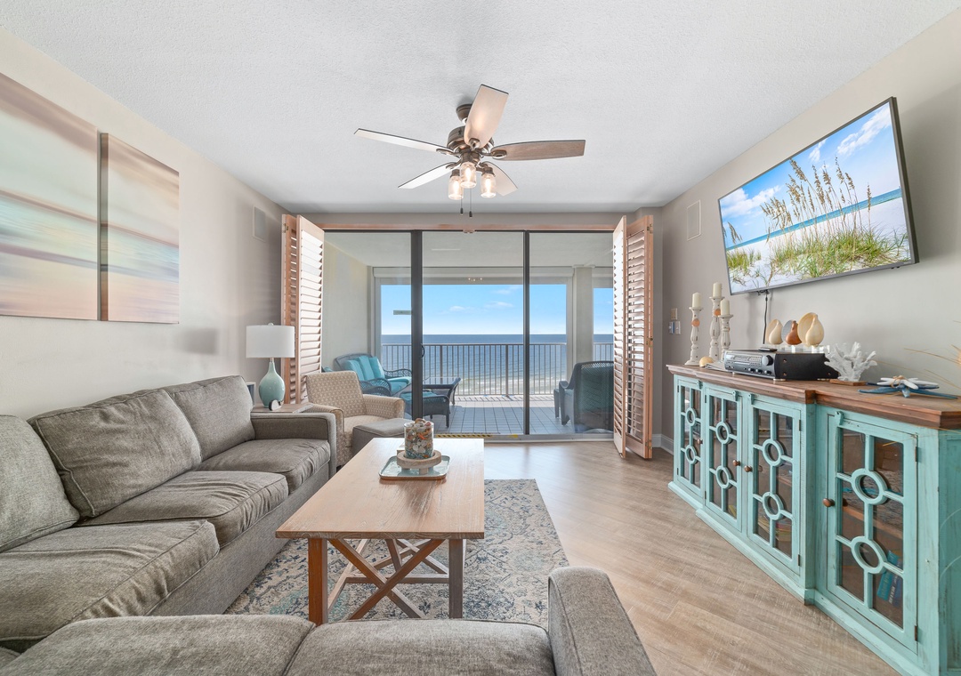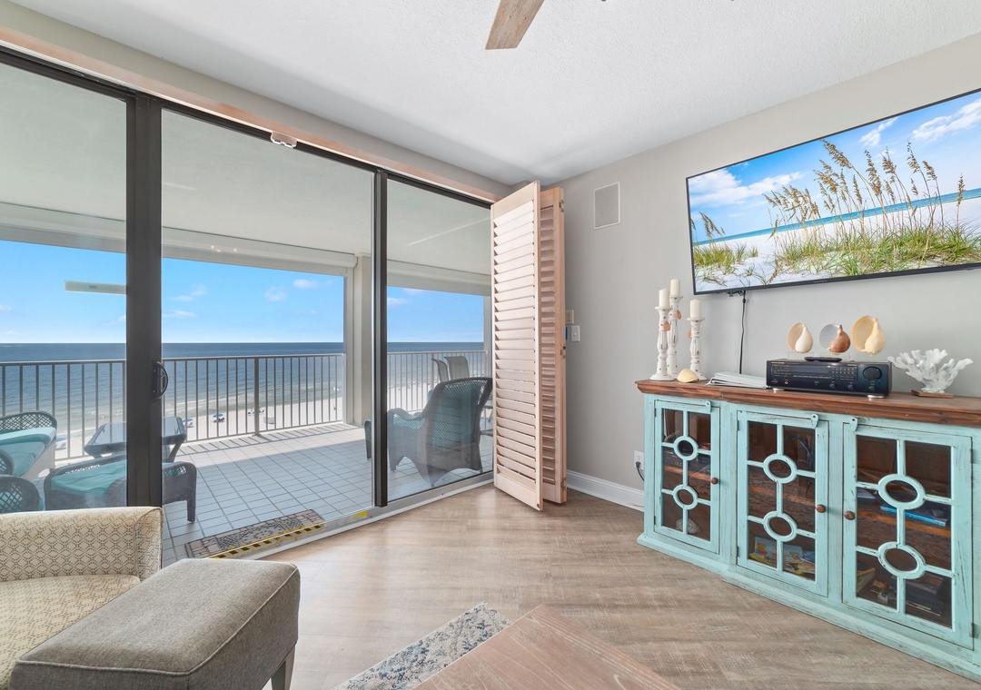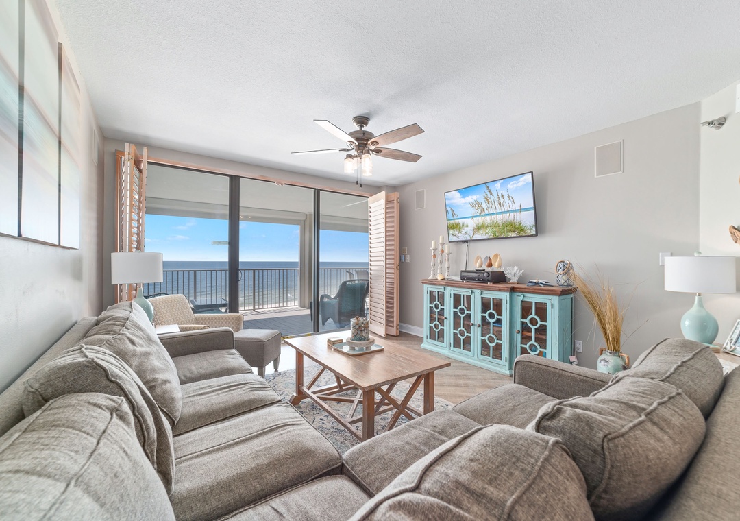 This fabulous 3 bedroom unit features a spacious open-concept layout, updated electronics and beautiful decor throughout! Lounge with the family for movie night in the living area, complete with comfortable furnishings, a large flat screen TV, and beachfront balcony access! The sliding glass doors open to your covered terrace, where you can sit and enjoy the beauty and splendor of the Gulf of Mexico without leaving the comfort of your beachfront abode. With plenty of seating you can even enjoy a delicious dinner alfresco while the moon and stars reflect over the water and the waves crash gently against the shore, creating a breathtaking backdrop for an evening you'll never forget!