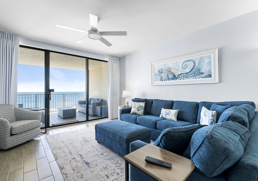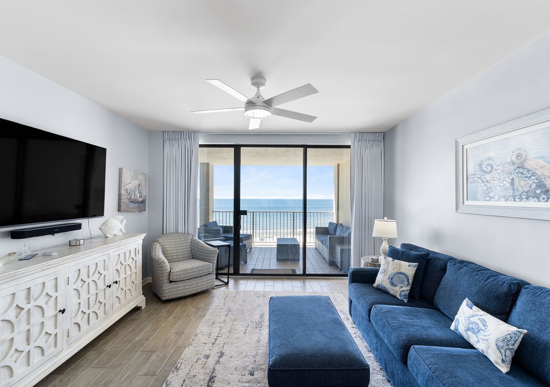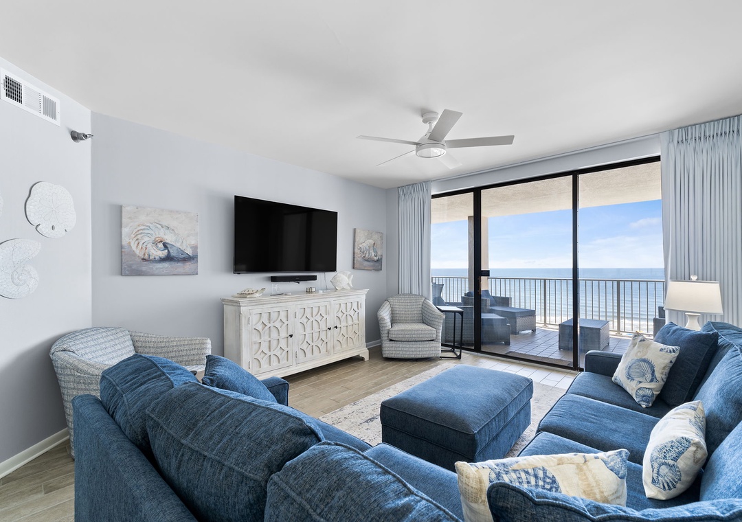 This fabulous 3-bedroom unit features a spacious open-concept layout, updated electronics, and beautiful decor throughout! Lounge with the family for movie night in the living area, complete with comfortable furnishings, a new 65 inch flat-screen TV, and large beachfront balcony access! The sliding glass doors open from the master and family room. Enjoy your oversized covered balcony with your morning coffee, lunches or evening drink, all while watching the peaceful waves of the gulf. With plenty of seating you can even enjoy a delicious dinner alfresco while the moon and stars reflect over the water and the waves crash gently against the shore, creating a breathtaking backdrop for an evening you'll never forget!