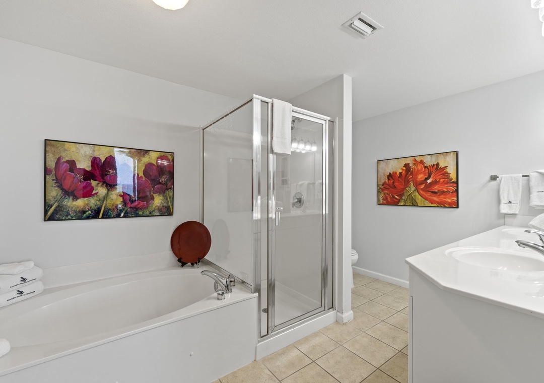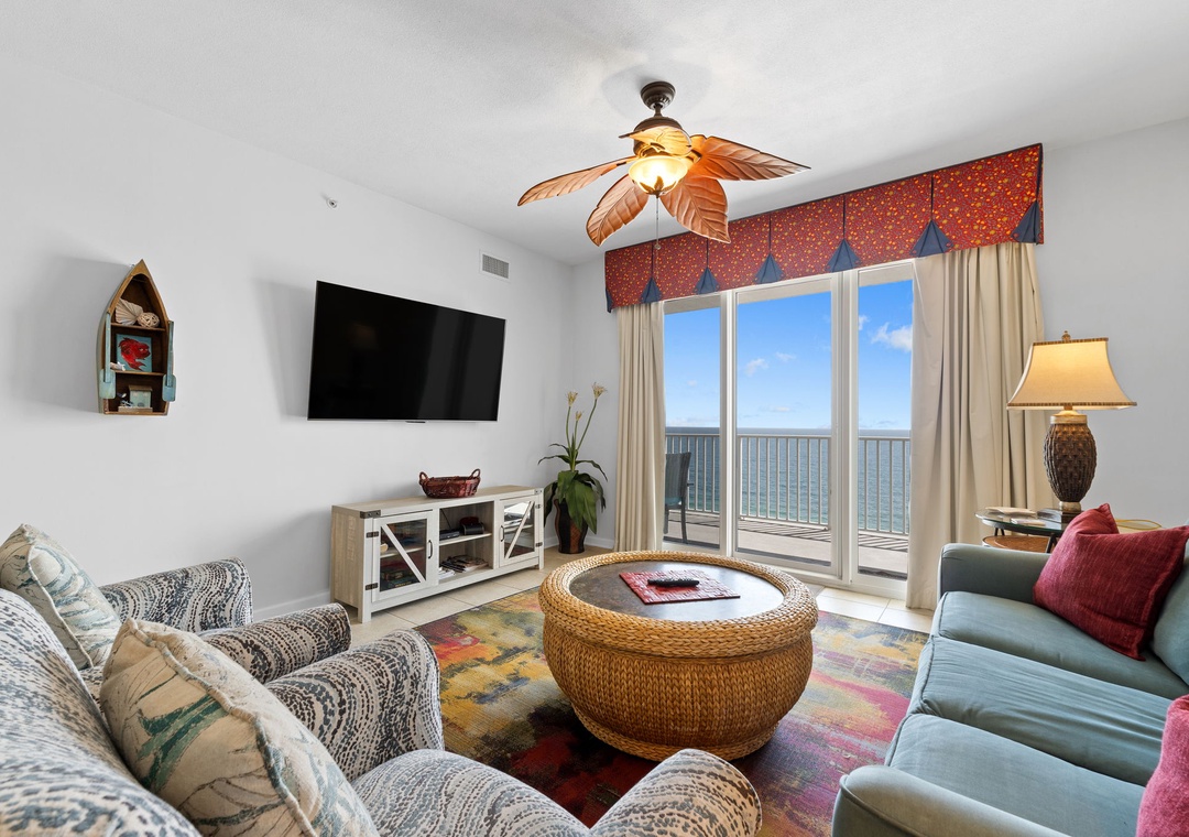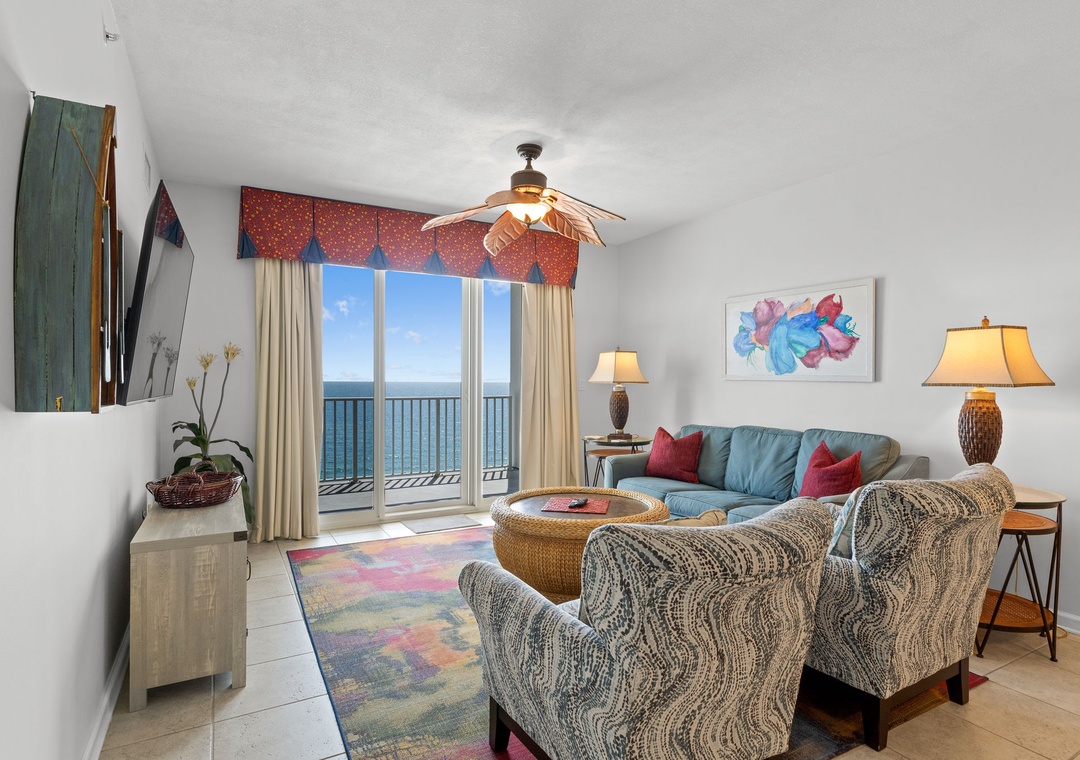 Each bedroom is thoughtfully furnished for restful nights, with the primary suite offering direct balcony access and a spa-style bathroom featuring a soaking tub and a walk-in shower. Central air, a private washer/dryer, and high-speed WiFi add convenience to your stay. Whether you're traveling with family or friends, Windemere 1206 is the ideal beachfront getaway to make lasting memories.