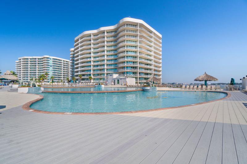 The Caribe is situated along a pristine and undeveloped coastline, the stunning views of sugar-white sands and sparkling emerald waters are simply breathtaking. The wrap-around balcony overlooking the Gulf and Intercoastal waters offers plenty of seating and space, so you'll be able to enjoy your morning coffee, dine al fresco or sip your favorite cocktail while enjoying the coastal breeze and the soothing sounds of the surf! This one-of-a-kind resort has more pools and slides than any other on the island! This gorgeous resort offers over 40,000 sq. feet of pools, lazy rivers, five star restaraunt on-site, putting greens, fitness centers, and boat docks! If you demand luxury and comfort, our gorgeous Caribe unit will exceed your expectations.