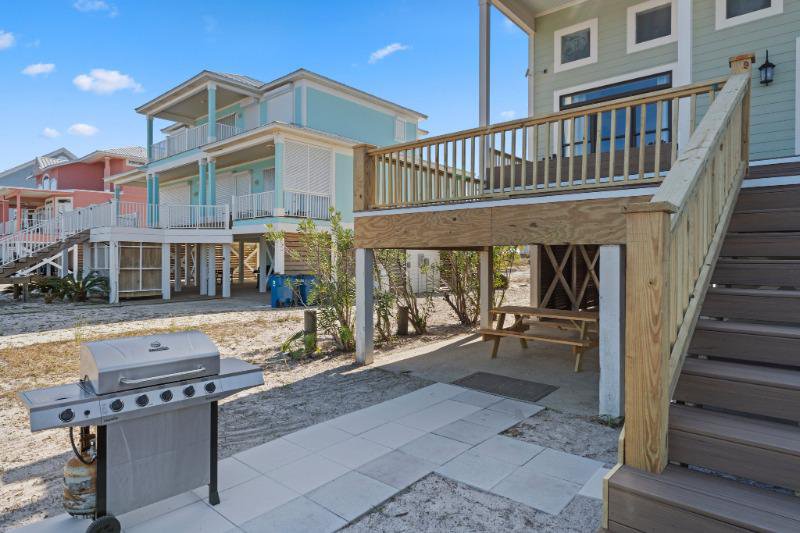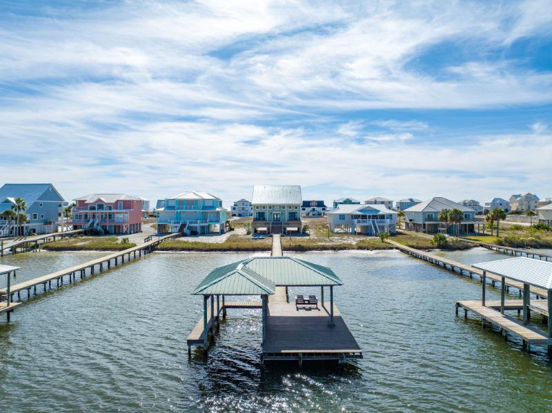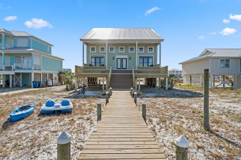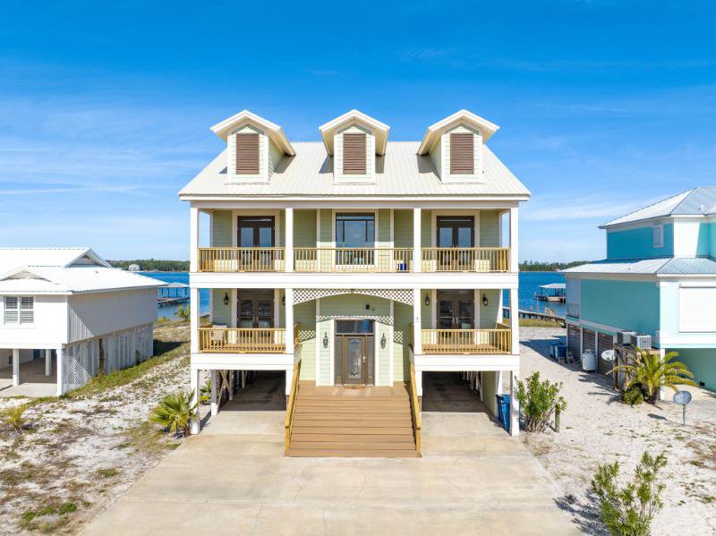Welcome to "Lime in the Coconut," a stunning 4-bedroom, 4-bathroom coastal retreat nestled in the serene neighborhood of West Beach, Gulf Shores. This remarkable home is the epitome of coastal luxury, offering a private pier and boat launch for water enthusiasts, while being just a short 1.2-mile drive from the vibrant Public Beach Access.